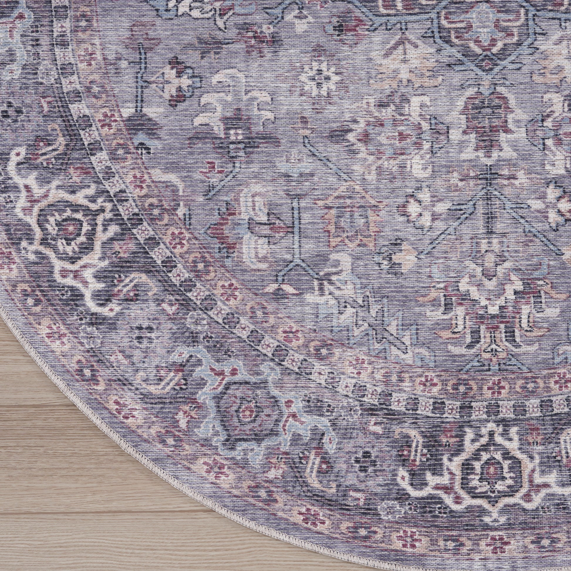 Nicole Curtis Machine Washable Series 1 5'3" x Round Grey Vintage Indoor Rug