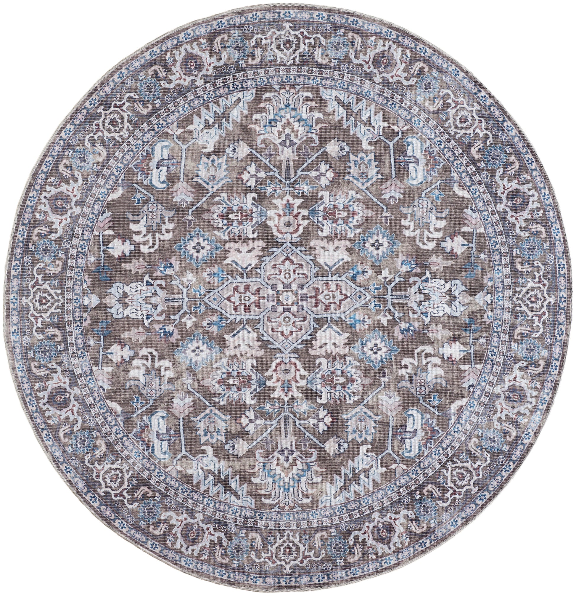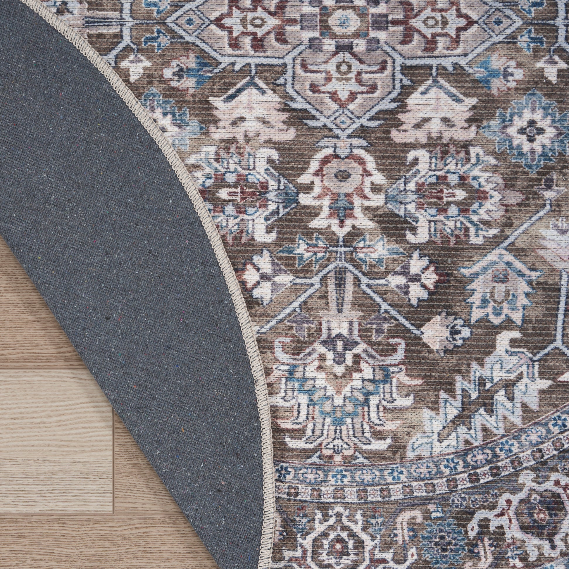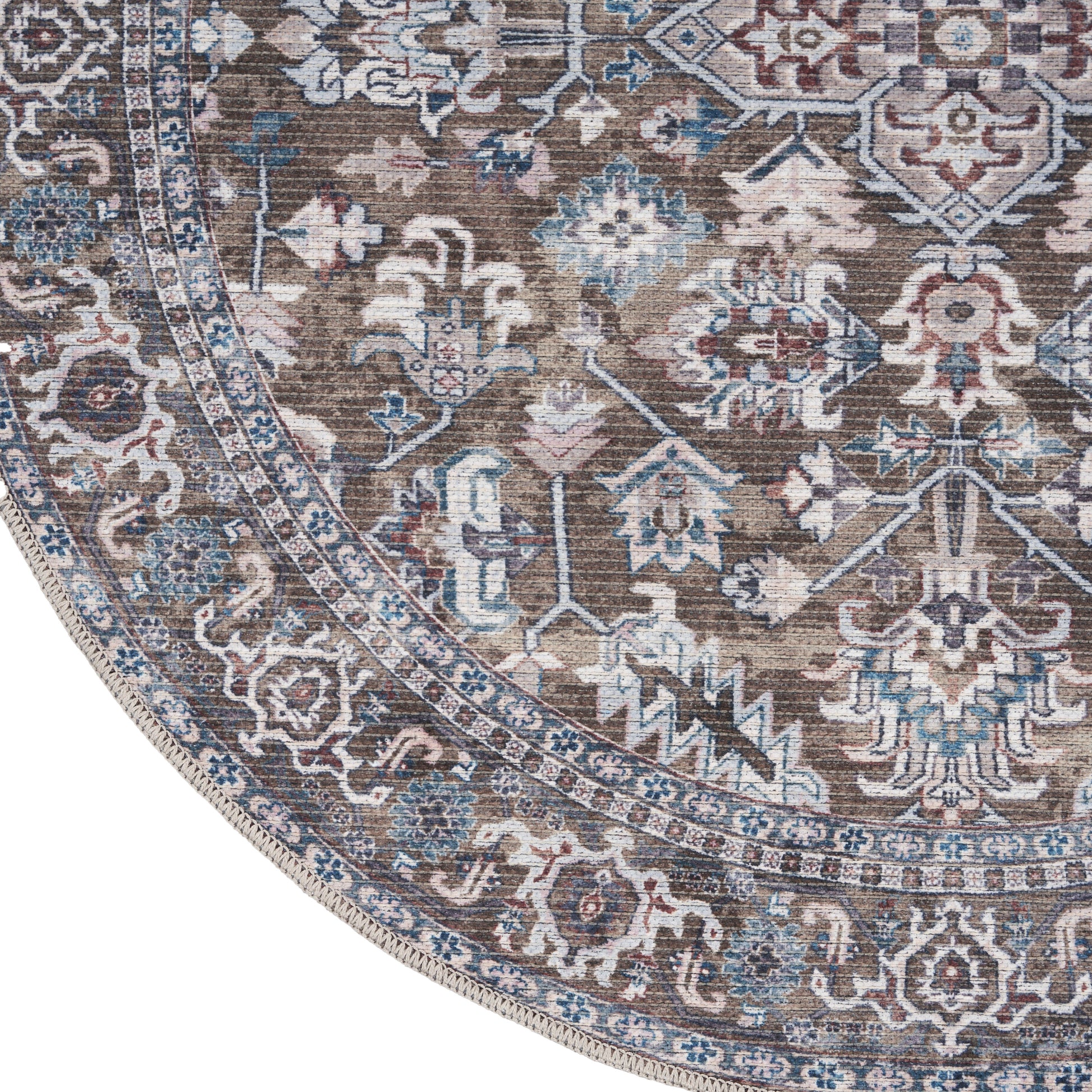 Nicole Curtis Machine Washable Series 1 5'3" x Round Olive Ivory Vintage Indoor Rug
