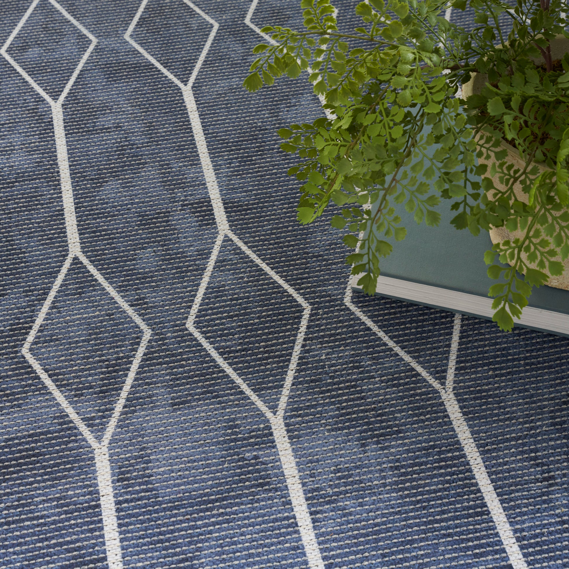 Bring stylish appeal to your space with this geometric rug from the Nicole Curtis Series 1 Washable Rug Collection. The vintage-inspired window panel design adds a distinctive look to your décor with a purposefully distressed navy-blue ground and diamond overlay. Flat woven from a super-soft blend of cotton and poly-chenille, this machine washable rug is ideal for busy households and spill-prone areas.