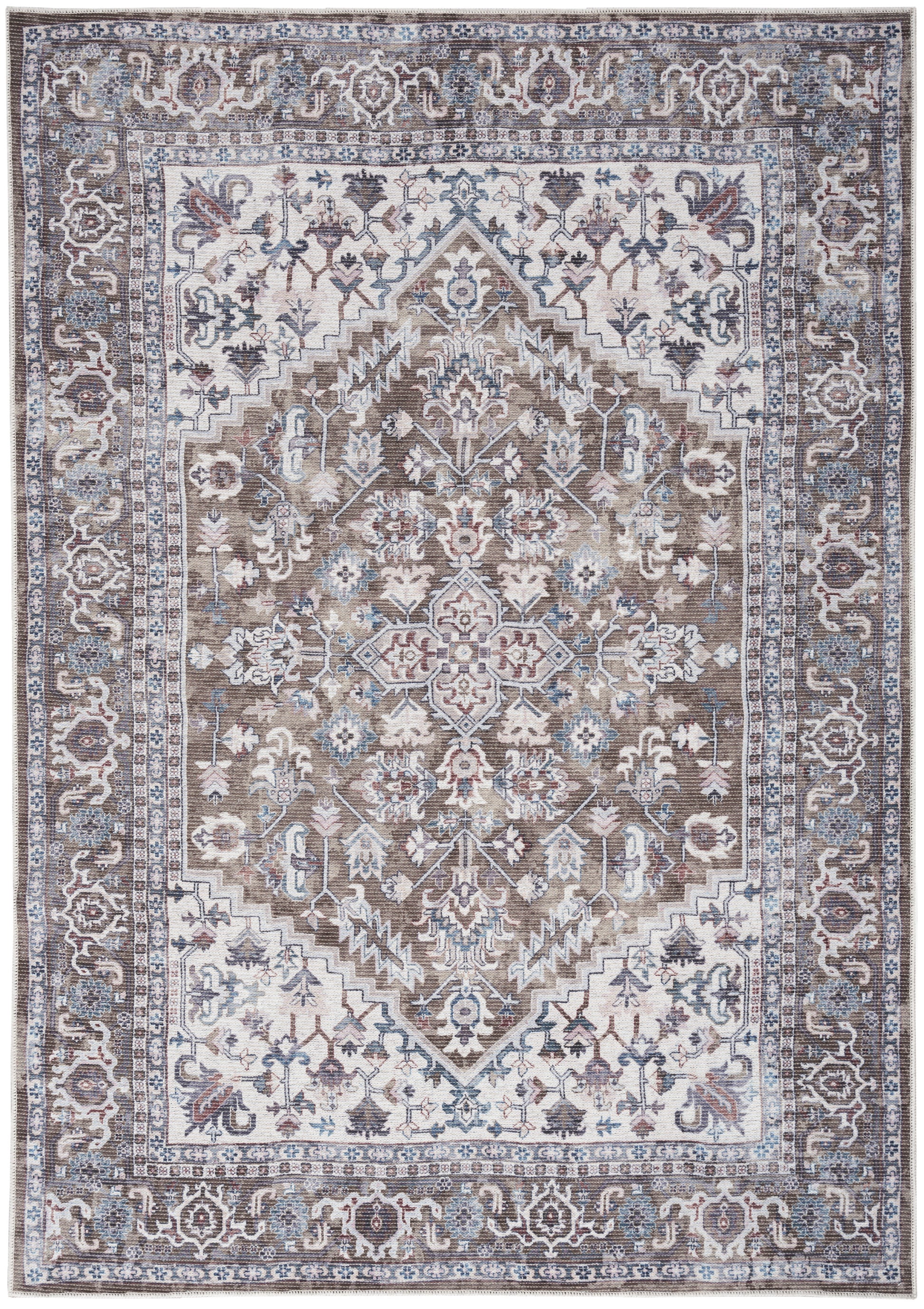 Nicole Curtis Machine Washable Series 1 6' x 9' Olive Ivory Vintage Indoor Rug