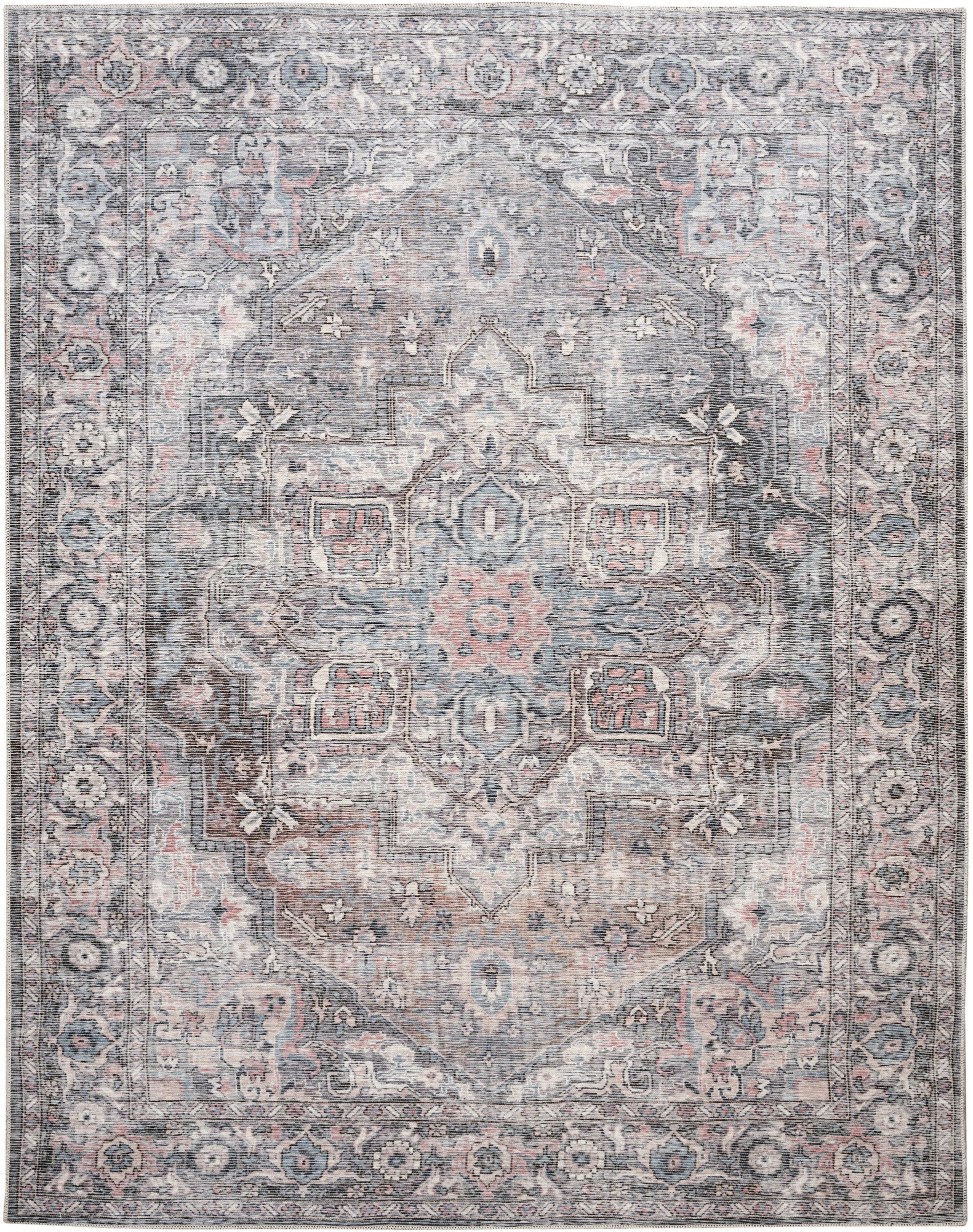Nicole Curtis Machine Washable Series 1 7'10" x 9'10" Grey Vintage Indoor Rug