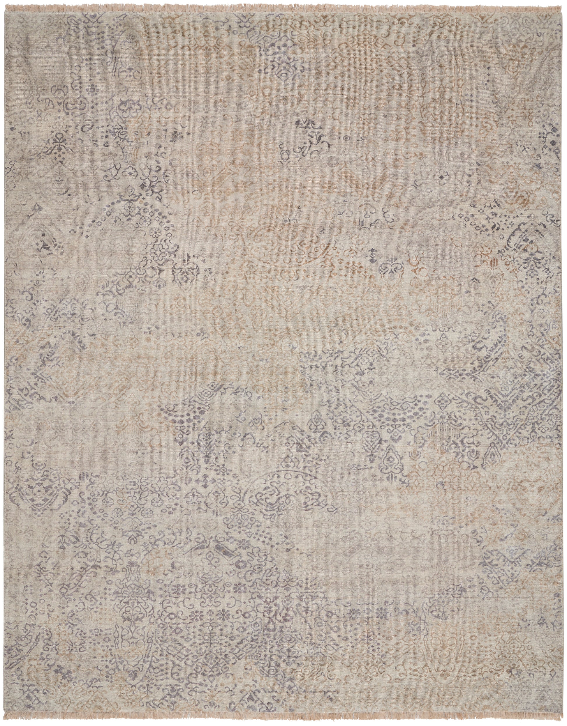 In alluring shades of opal, a magnificent antique-inspired design brings a light-filled luminosity to any room where a traditional touch is required. With its eye-catching attention to detail, fabulous fringes, gorgeous hand knotting and opulent bamboo extruded silk-like pile, this breathtaking Aldora area rug from Nourison is destined to dazzle.
