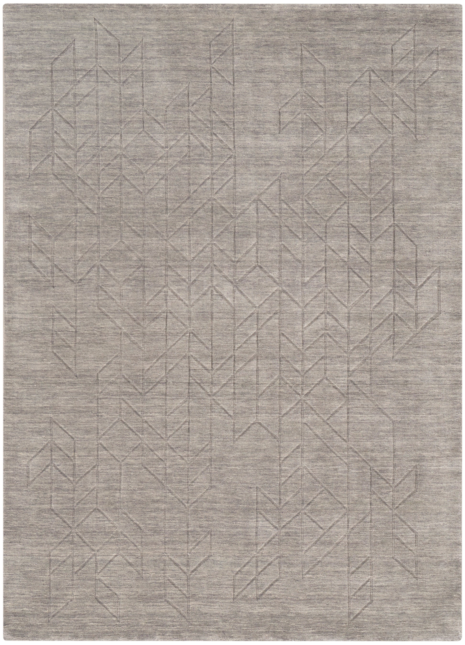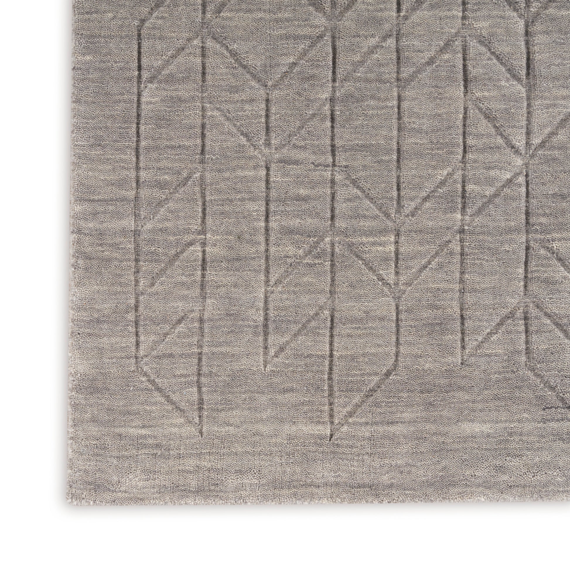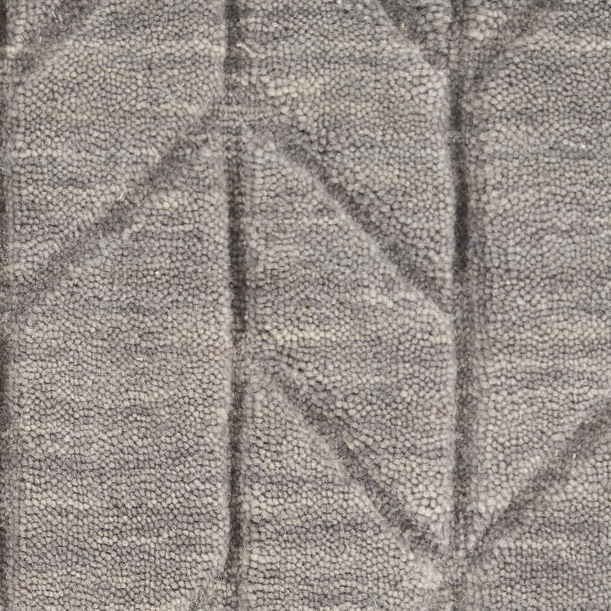 This modern grey rug from the Alessia Collection adds cozy style to your decor. Effortlessly blending style and function, this neutral rug features a heathered ground that adds nuanced color variations, a carved geometric pattern that offers a subtle layer of depth, and a medium-thick pile that has a softly cushioned texture. Handmade from 100% European wool; no backing.