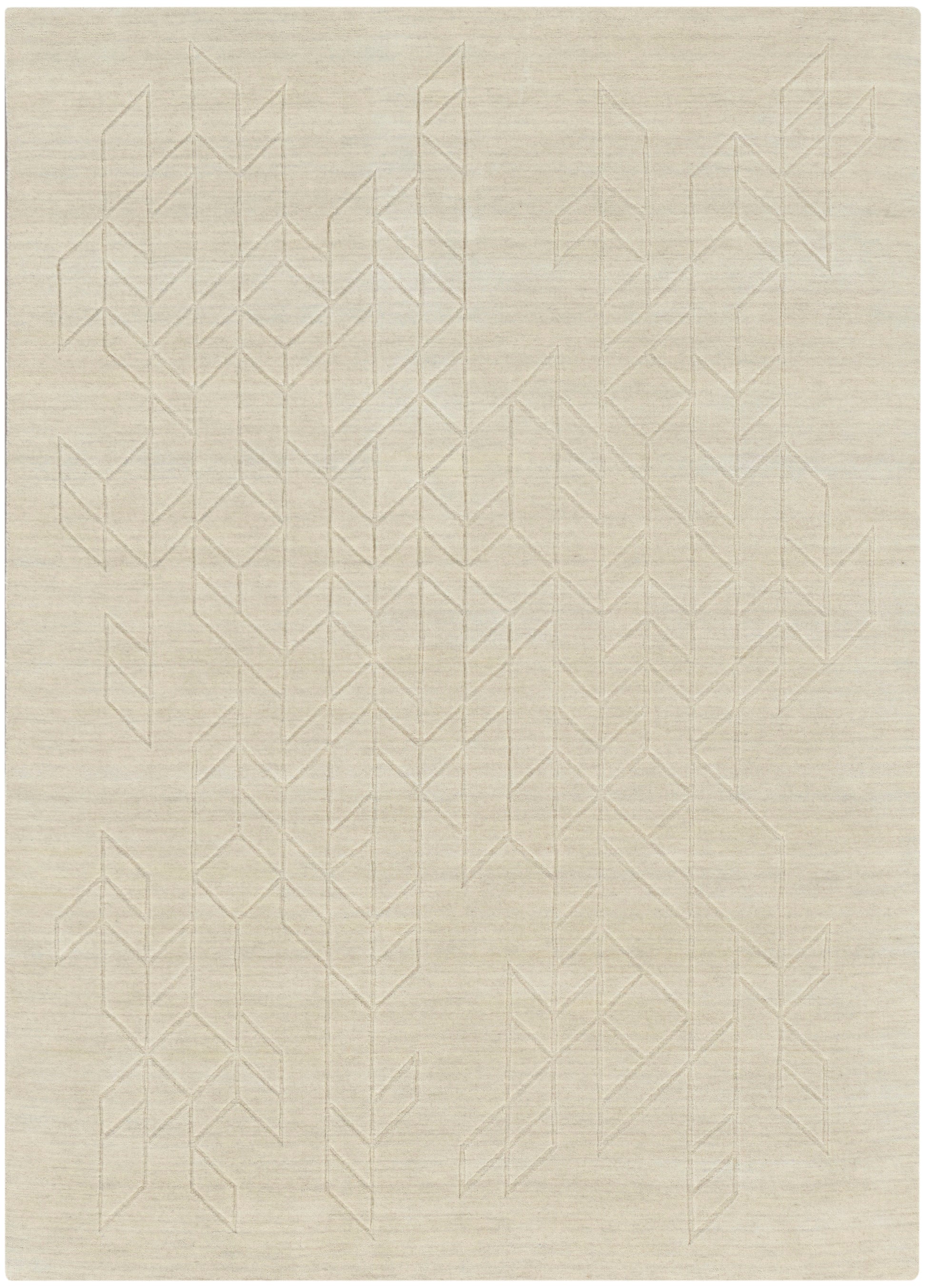 This modern ivory rug from the Alessia Collection adds cozy style to your decor. Effortlessly blending style and function, this neutral rug features a heathered ground that adds nuanced color variations, a carved geometric pattern that offers a subtle layer of depth, and a medium-thick pile that has a softly cushioned texture. Handmade from 100% European wool; no backing.