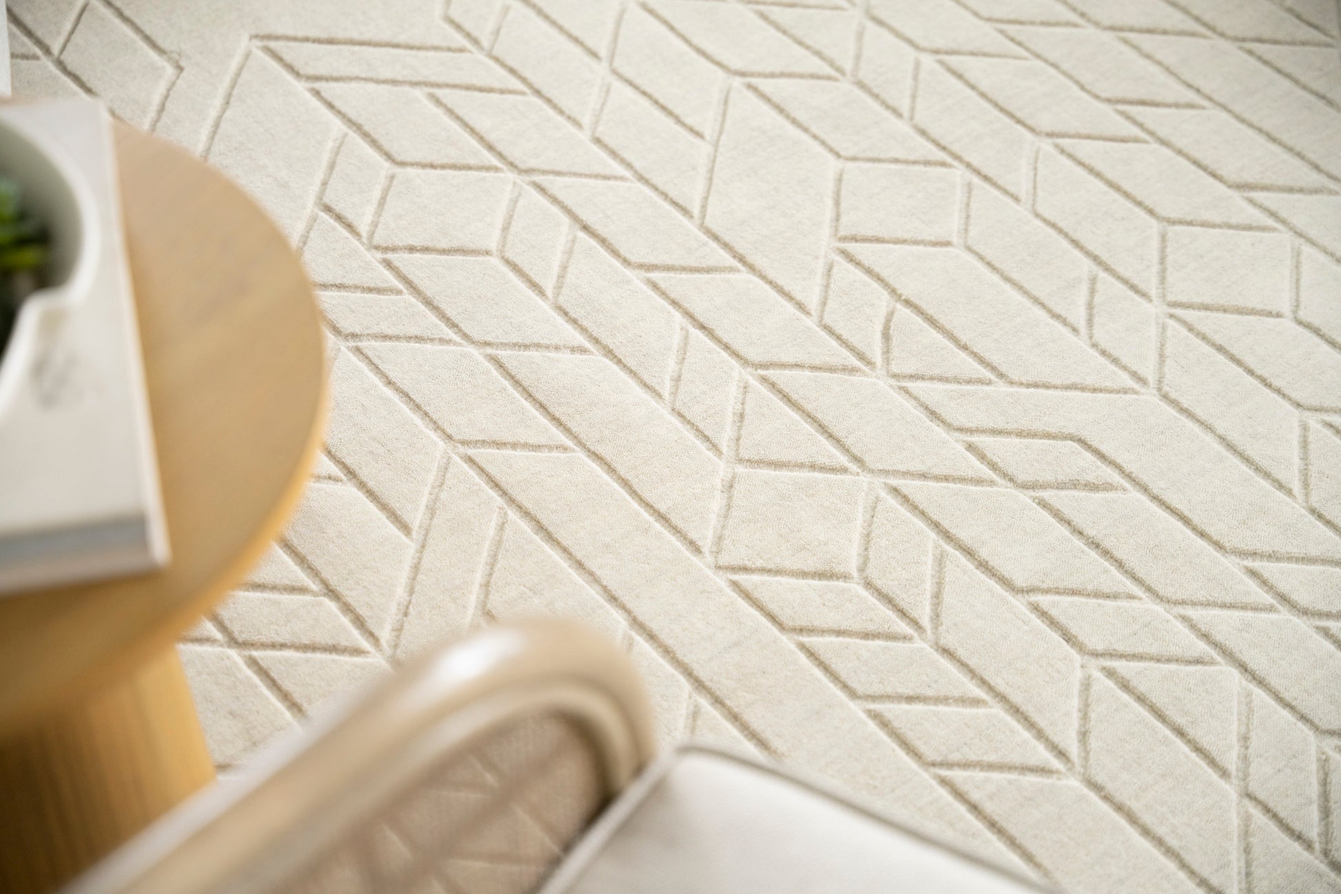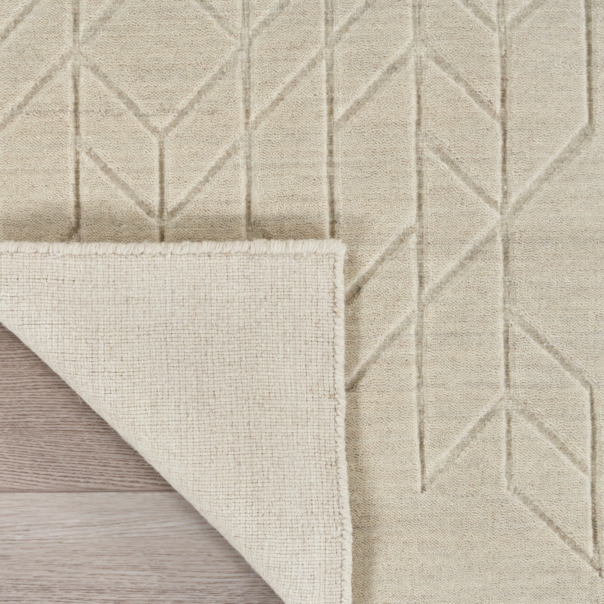 This modern ivory rug from the Alessia Collection adds cozy style to your decor. Effortlessly blending style and function, this neutral rug features a heathered ground that adds nuanced color variations, a carved geometric pattern that offers a subtle layer of depth, and a medium-thick pile that has a softly cushioned texture. Handmade from 100% European wool; no backing.