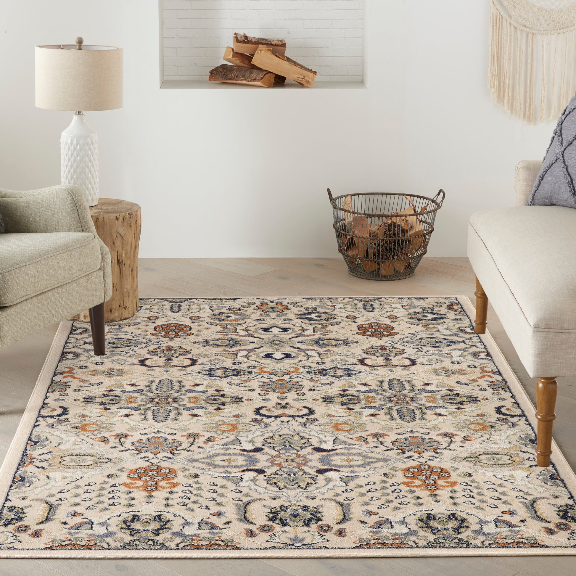 Bring a relaxed vibe to your home with this floral boho rug from the Allur Collection. The multicolored beige, blue, green, and muted orange design adds just the right amount of pop to your decor. Machine made of low shed, low profile polypropylene for easy cleaning. Choose from a variety of sizes – including accent rugs for the entryway and other small spaces to runners for the kitchen, and large rugs for the living room or bedroom.