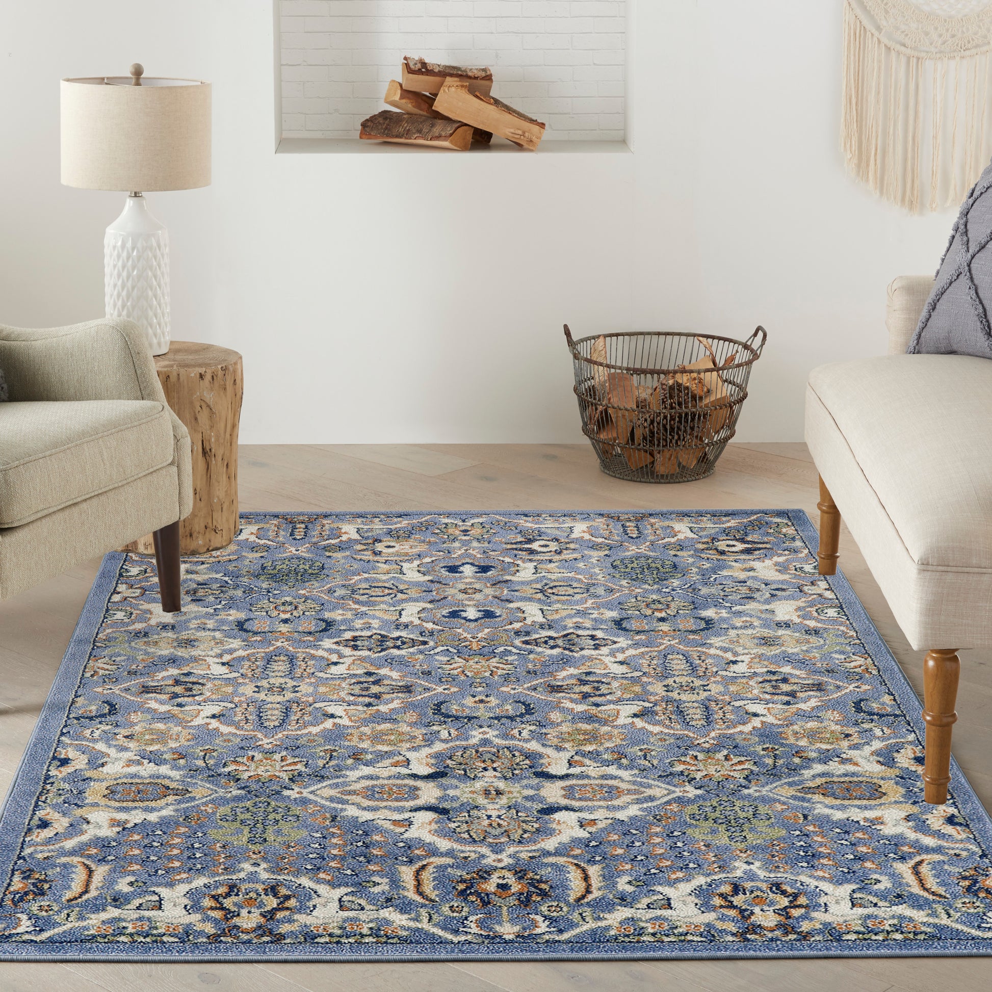 Bring a relaxed vibe to your home with this floral boho rug from the Allur Collection. The multicolored blue, grey, ivory, yellow, and muted orange design adds just the right amount of pop to your decor. Machine made of low shed, low profile polypropylene for easy cleaning. Choose from a variety of sizes – including accent rugs for the entryway and other small spaces to runners for the kitchen, and large rugs for the living room or bedroom.