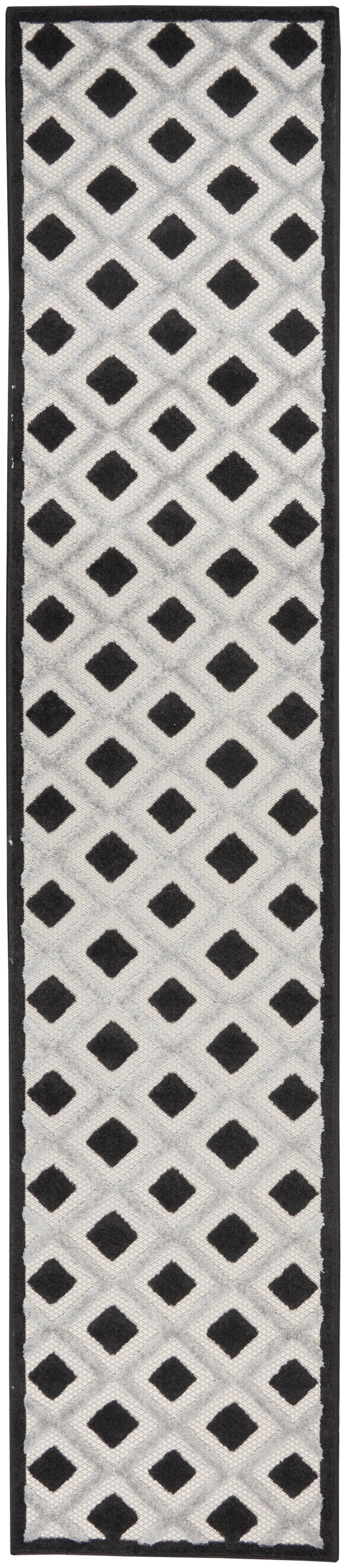 Nourison Aloha 2'3" x 12' Black White Modern Rug