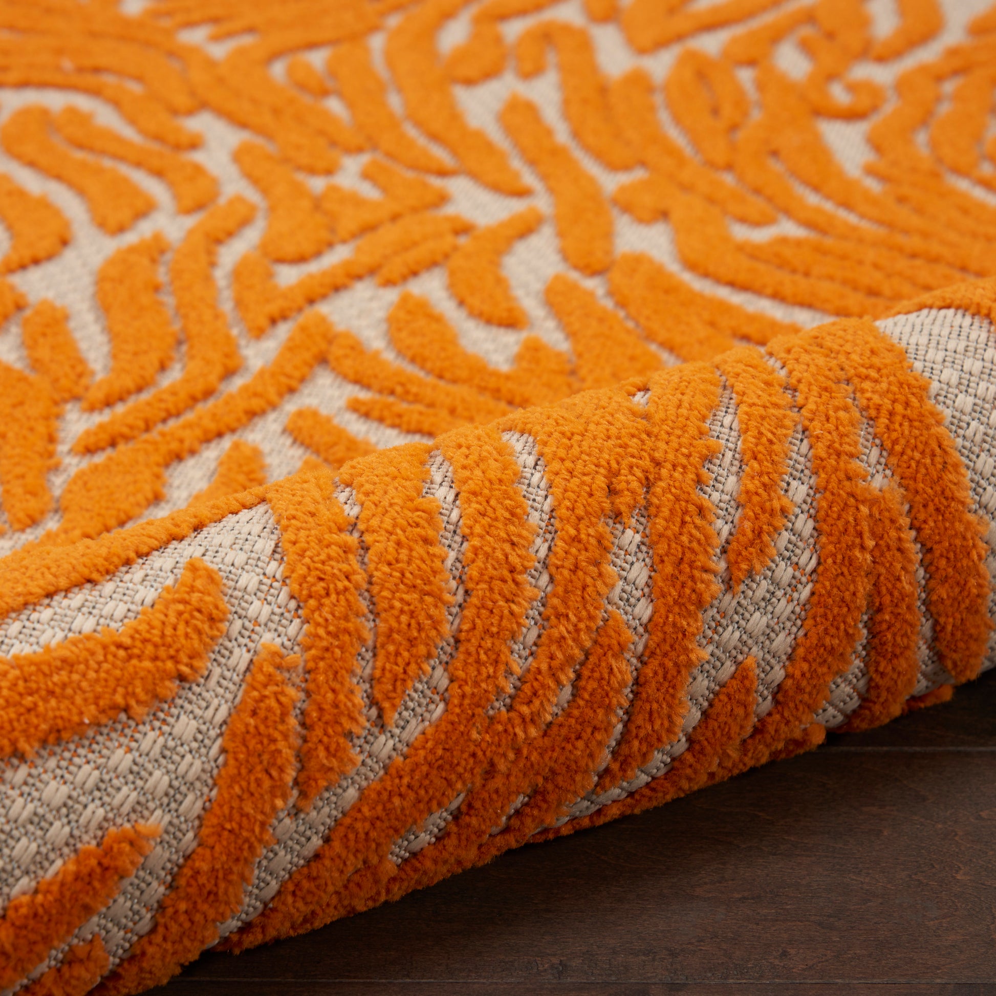 Bold and exotic, this zebra-inspired design radiates a straightforward sophistication thanks to a contemporary two-tone color palette of orange and beige. This graphic outdoor rug will arouse your animal instincts. Created from premium stain-resistant fibers for long wear and a splendid texture. Easily washable outdoors: simply hose rinse and allow both sides time to fully air dry.