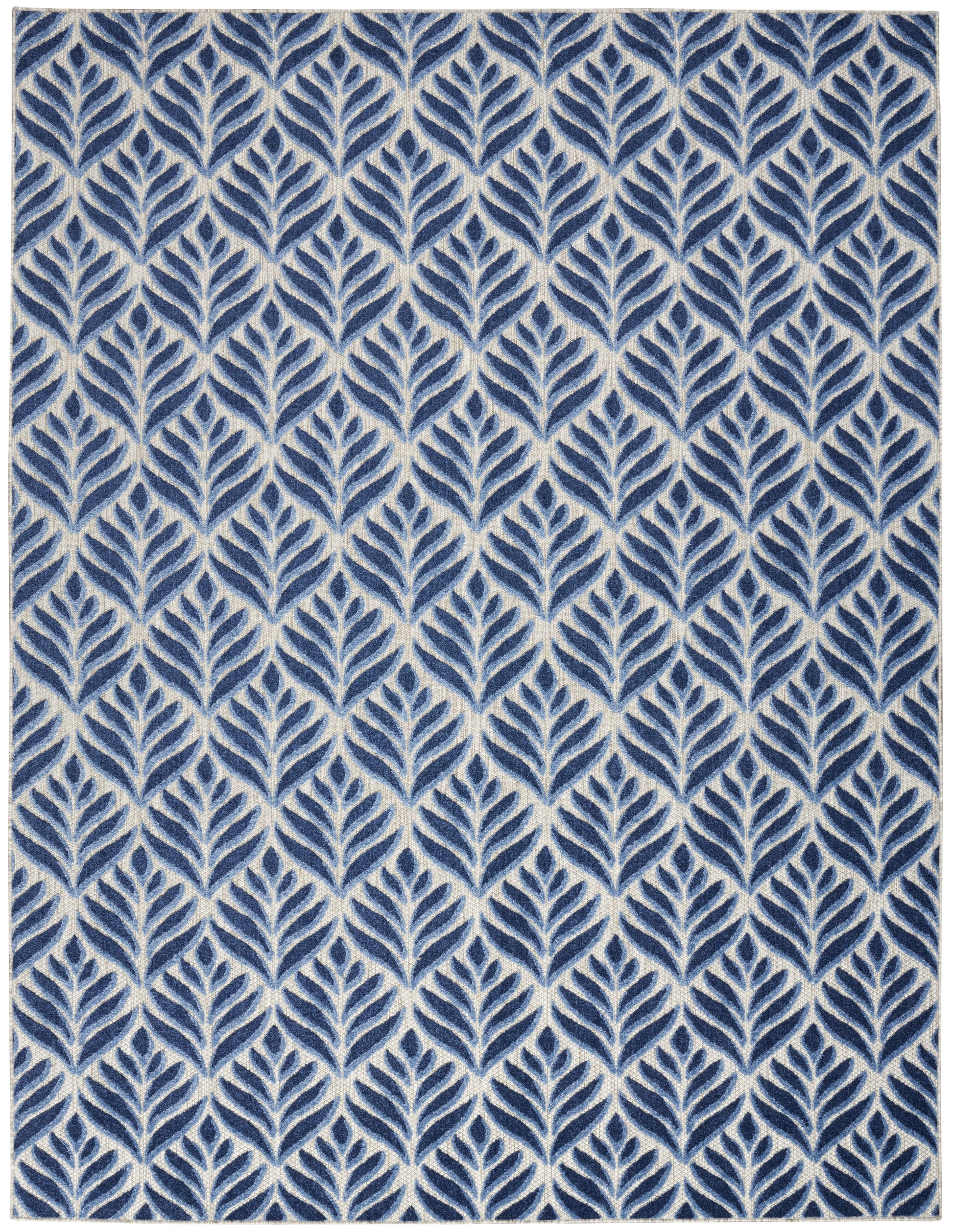 Tropical meets modern with this blue outdoor rug from the Aloha Collection. The flatwoven design is adorned with a raised, repeat palm leaf pattern that adds a subtle layer of dimension. Presented in calming colors, this botanical rug beautifully complements your patio, balcony, or deck. Made from durable polypropylene yarns that make it great for use in high-traffic indoor spaces as well, such as your kitchen, dining room, and living room. Hand washable outdoors: rinse with a hose and air dry.