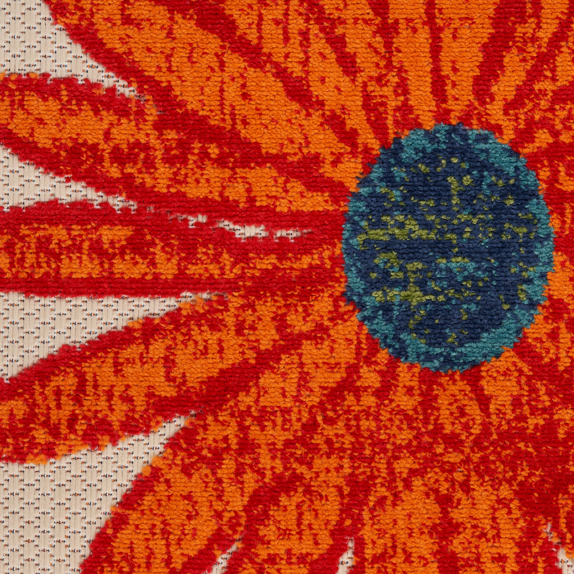 Bring a touch of nature to your floors with this multicolored floral outdoor rug from the Aloha Collection. The oversized daisy pattern truly pops thanks to a subtly raised finish that adds a surprisingly soft texture to the flatwoven surface. This contemporary rug is stylish and functional, pulling double duty as a foundation for both your indoor and outdoor spaces. Hand washable outdoors: rinse with a hose and air dry.