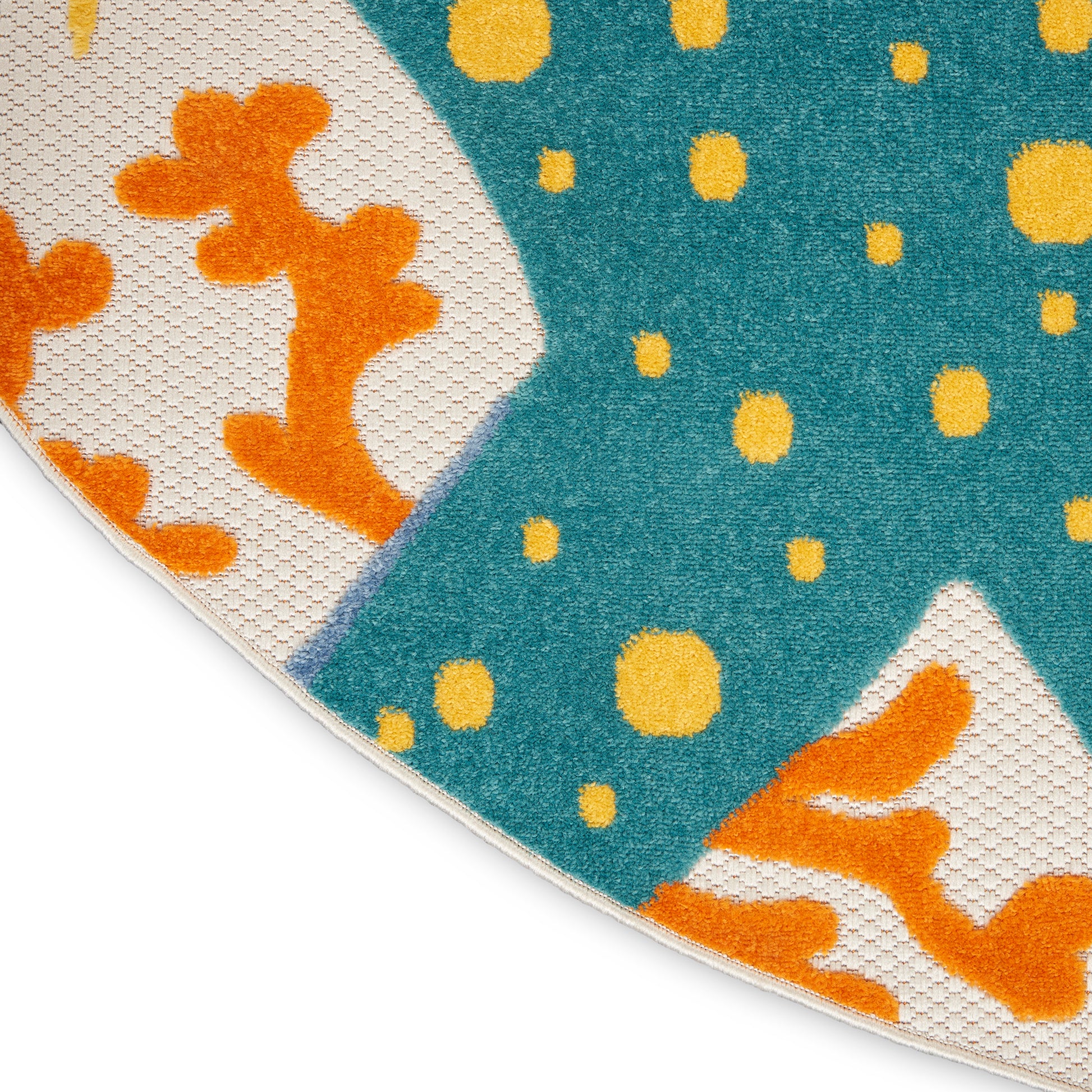 Nourison Aloha 4' x Round Multicolor Coastal, Nautical & Beach Rug