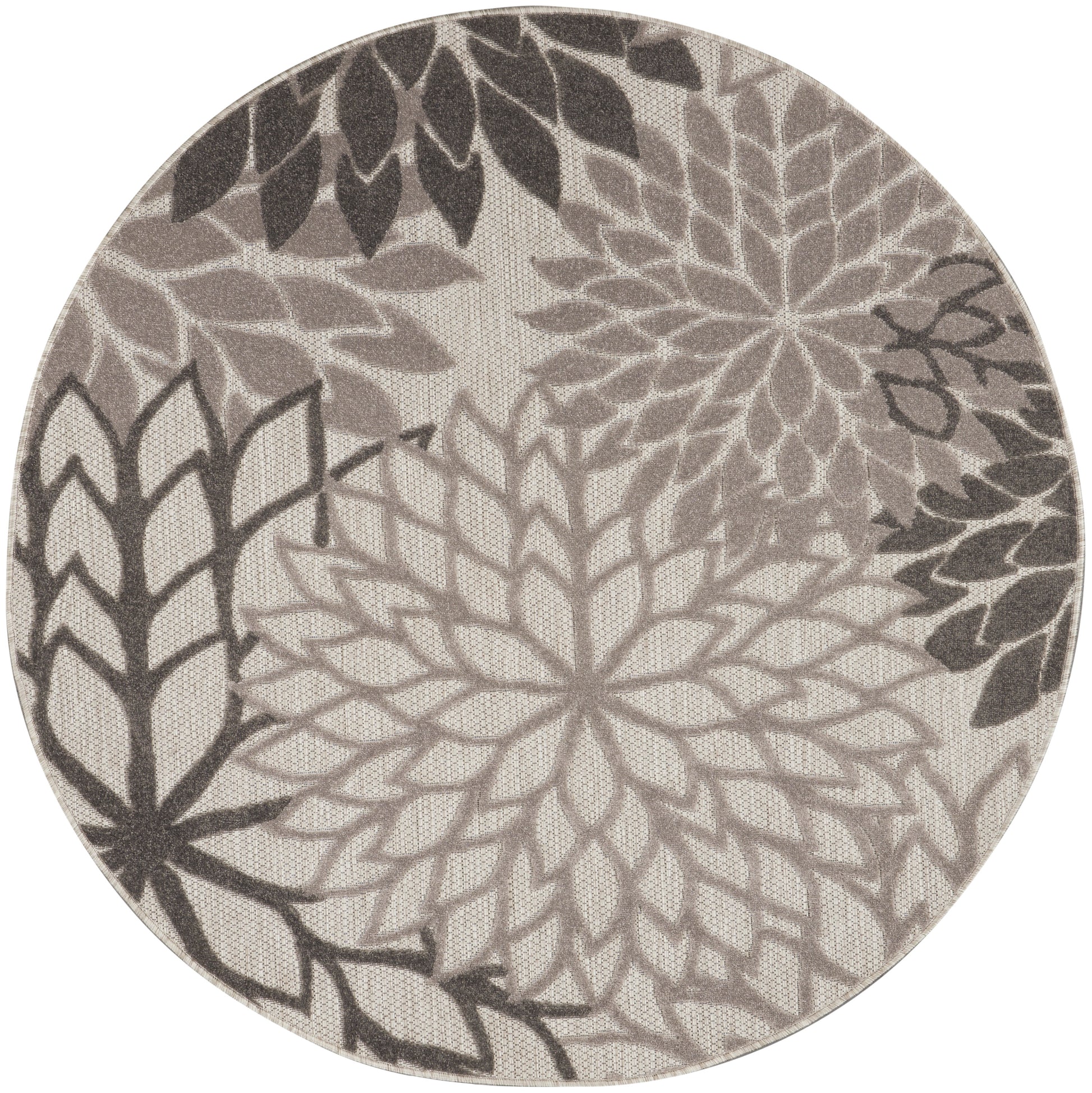 Nourison Aloha 4' x Round Silver Grey Tropical Rug
