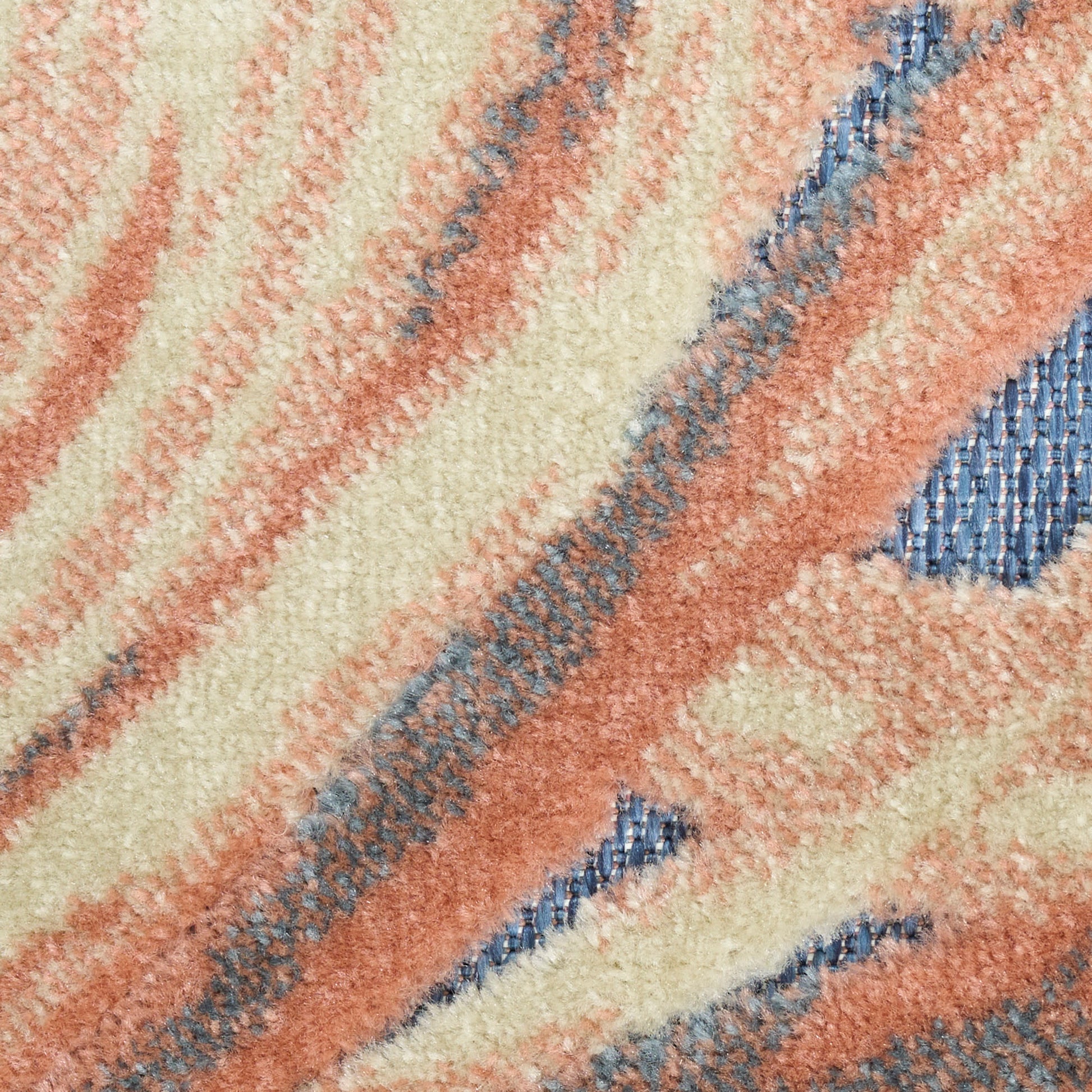 Bring the warm and relaxing feel of a tropical retreat to your space with this rose and blue outdoor rug from the Aloha Collection. Oversized botanical leaves sprawl across the surface, complete with tonal shading that channels the sun-dappled beauty of a lush paradise. The high-low cut pile adds a stunning dimensional effect and soft texture ideal for indoor and outdoor areas alike. Made from polypropylene, this tropical rug is designed to withstand the elements – great for busy households with pets and young children.
