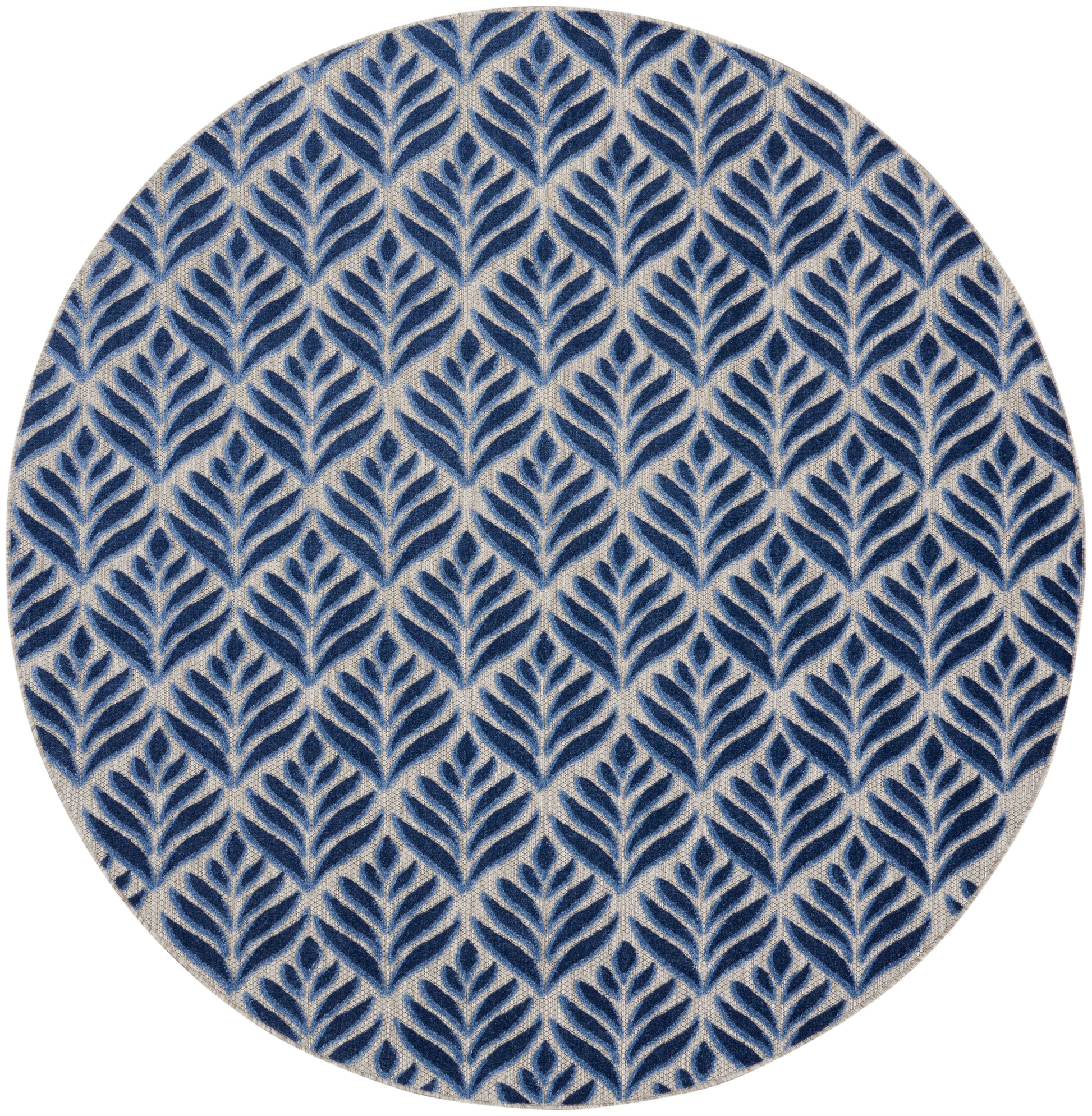 Nourison Aloha 5'3" x Round Blue Tropical Rug