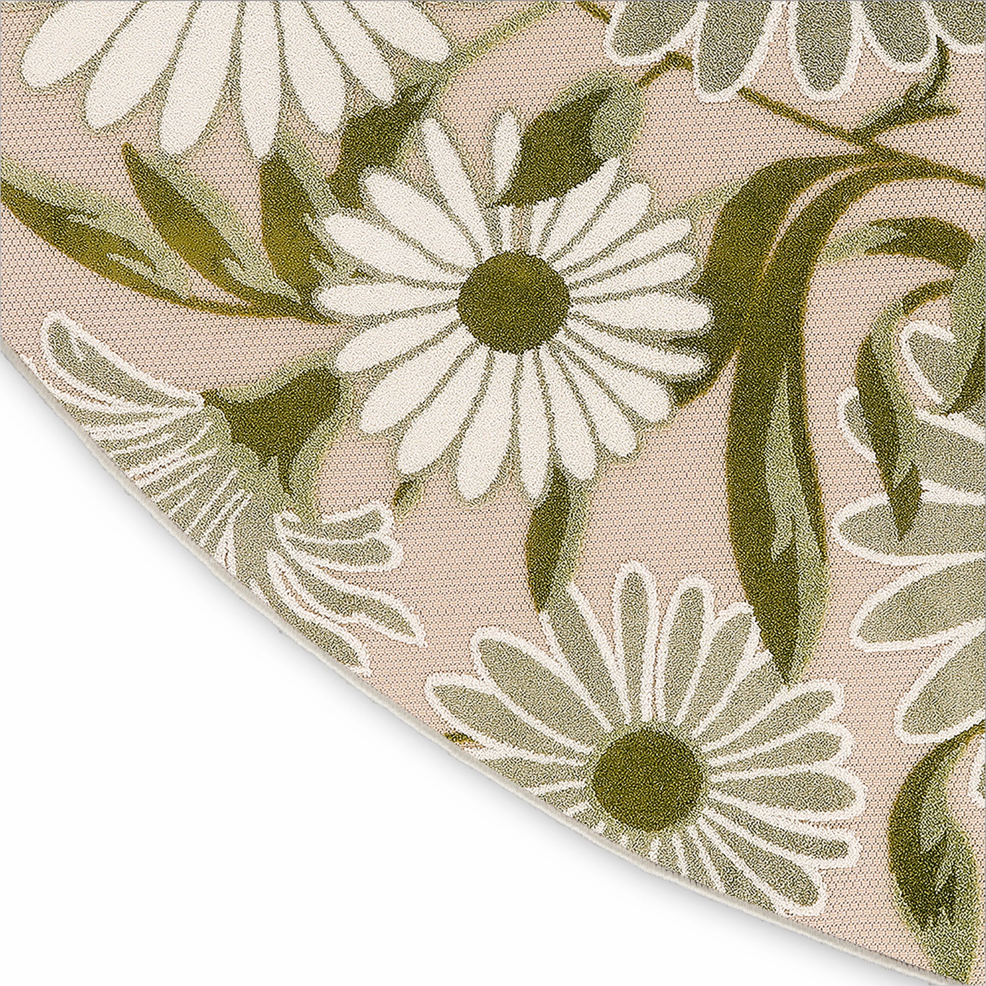 Bring a touch of nature to your floors with this green floral outdoor rug from the Aloha Collection. The oversized daisy pattern truly pops thanks to a subtly raised finish that adds a surprisingly soft texture to the flatwoven surface. This contemporary rug is stylish and functional, pulling double duty as a foundation for both your indoor and outdoor spaces. Hand washable outdoors: rinse with a hose and air dry.