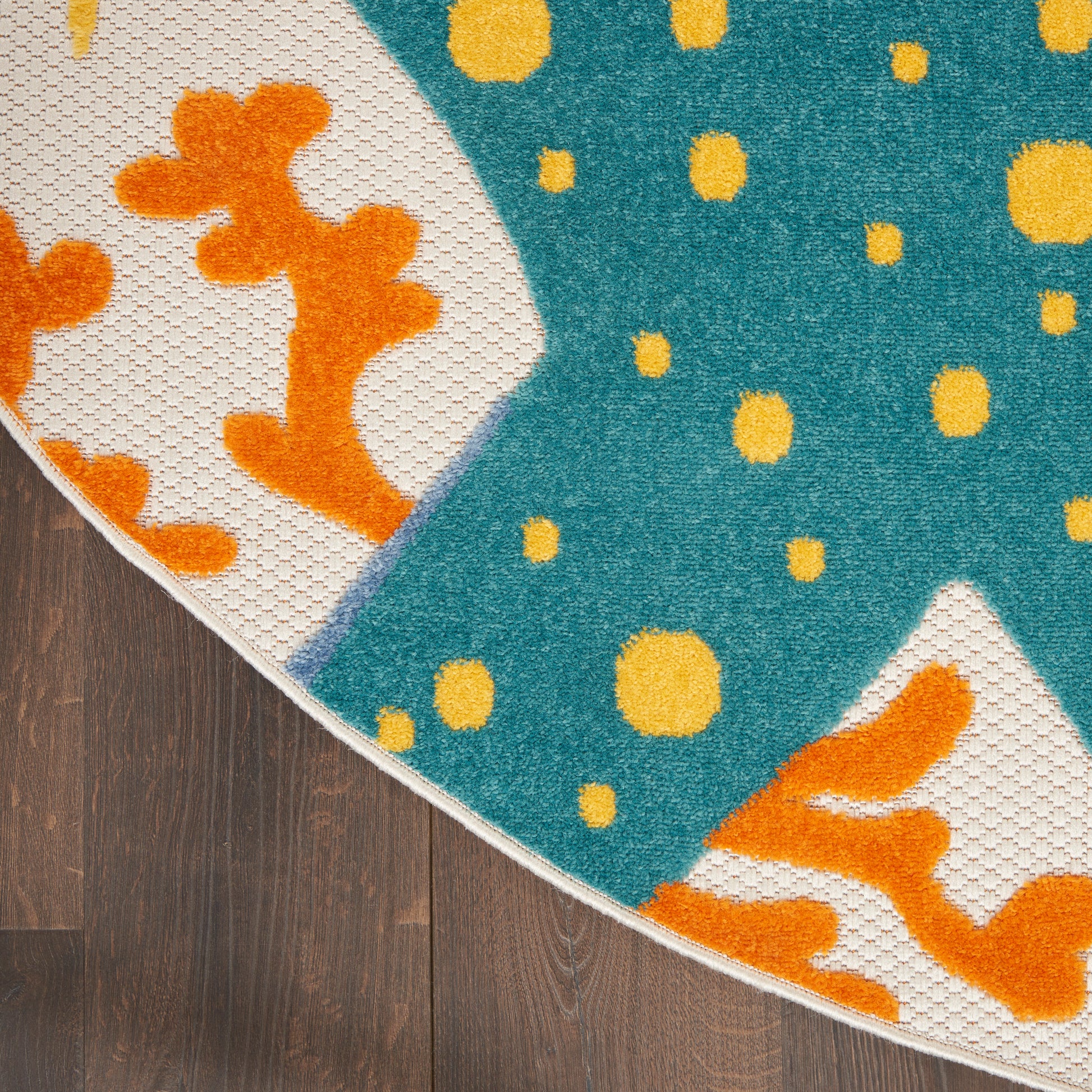Roll out your own little slice of the beach life with this coastal outdoor area rug from the Aloha Collection. Breezy starfish, seashells, and undersea bubbles woven in vibrant multicolor sets a foundation for festive days on your patio, deck, or anywhere inside your home. Made from premium stain resistant fibers for durability and ease of cleaning. Hand washable outdoors: rinse with a hose and air dry.