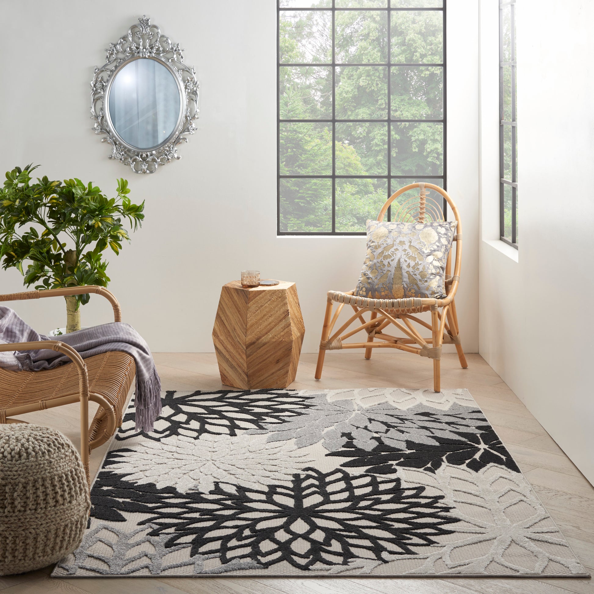 Nourison Aloha 6' x 9' Black White Tropical Rug