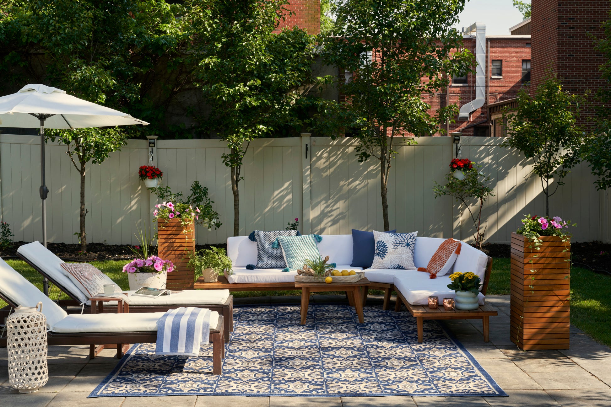 This Aloha outdoor rug brings together the best of two worlds: the classic charm of patterned tile and the warmth of an area rug! Featuring an ornate geometric pattern in blue, this contemporary rug offers a quick and easy alternative to laying down tile. Created from premium stain-resistant fibers for long wear and low maintenance – perfect for use in both indoor and outdoor spaces such as the living room, kitchen, dining room, patio, porch, or deck. Hand washable outdoors: rinse with a hose and air dry.