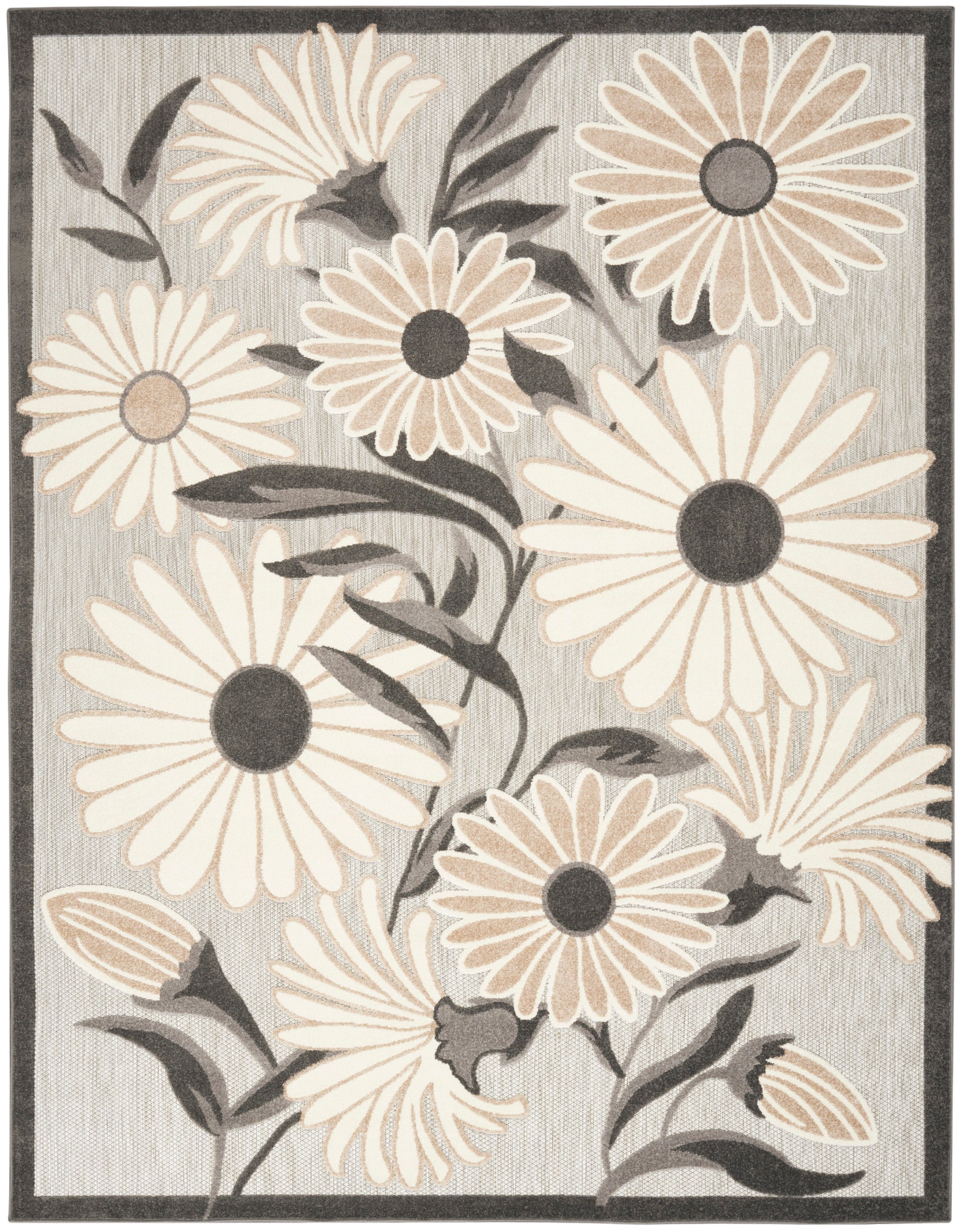 Bring a touch of nature to your floors with this beige floral outdoor rug from the Aloha Collection. The oversized daisy pattern truly pops thanks to a subtly raised finish that adds a surprisingly soft texture to the flatwoven surface. This contemporary rug is stylish and functional, pulling double duty as a foundation for both your indoor and outdoor spaces. Hand washable outdoors: rinse with a hose and air dry.