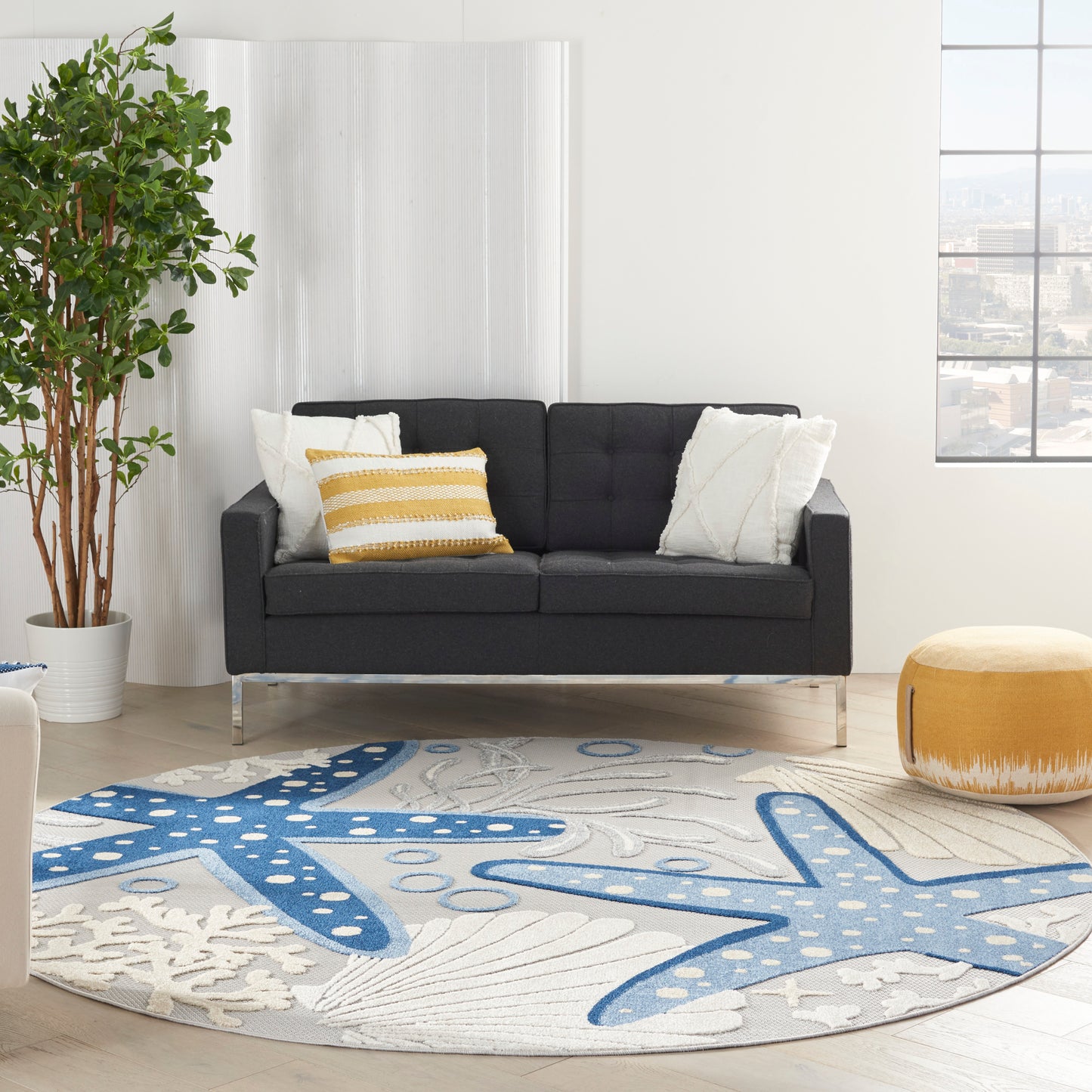 Nourison Aloha 7'10" x Round Blue Grey Coastal, Nautical & Beach Rug