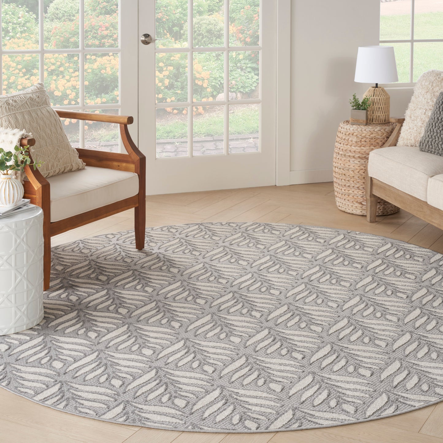 Nourison Aloha 7'10" x Round Grey Tropical Rug