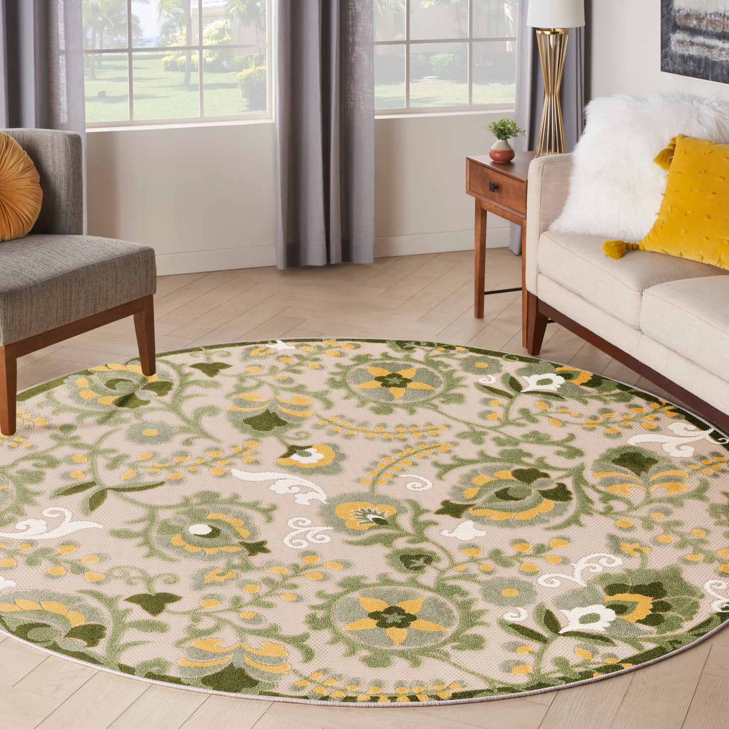 Nourison Aloha 7'10" x Round Ivory Green Outdoor Rug