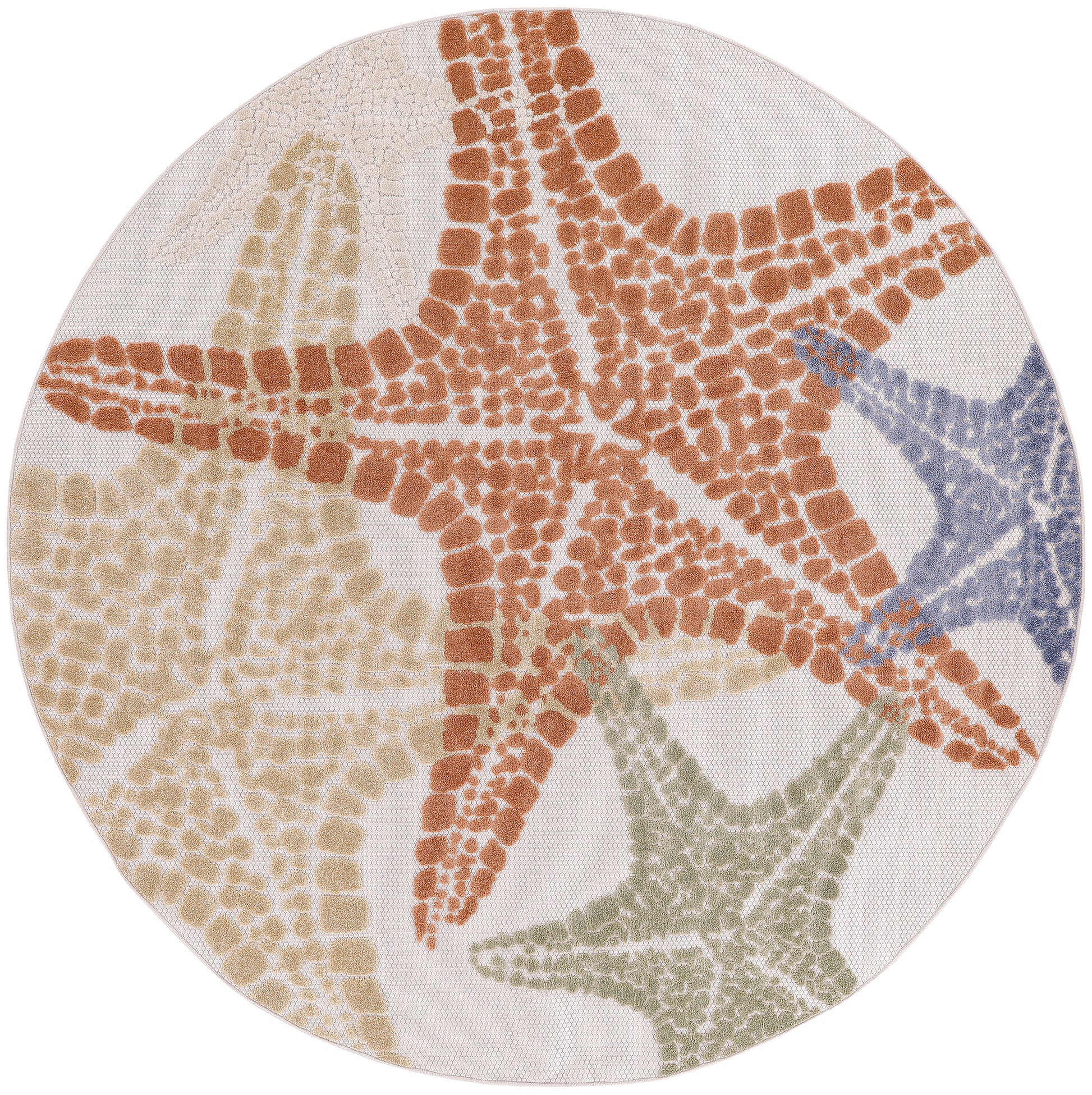Nourison Aloha 7'10" x Round Ivory Multicolor Outdoor Rug