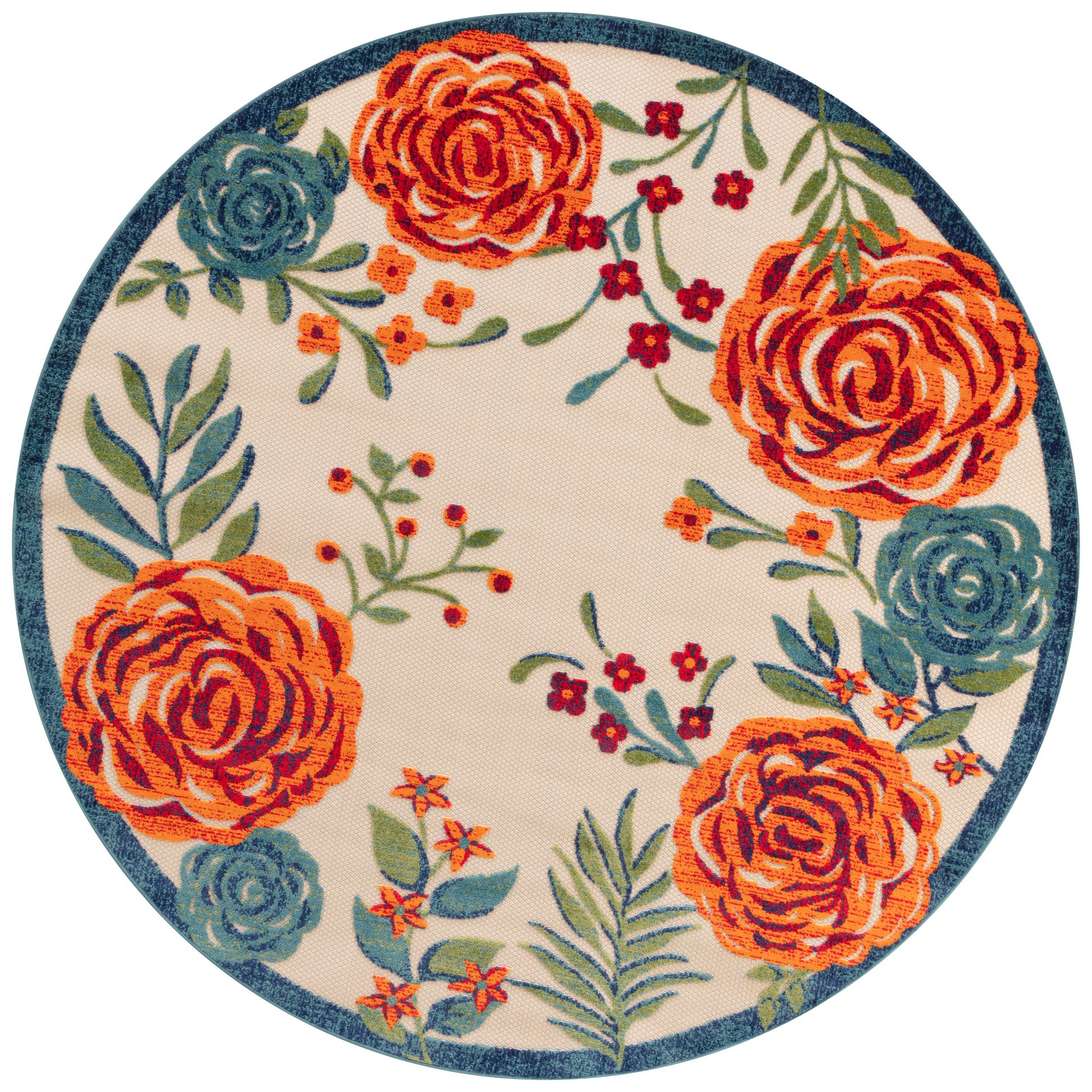 Nourison Aloha 7'10" x Round Ivory Multicolor Outdoor Rug