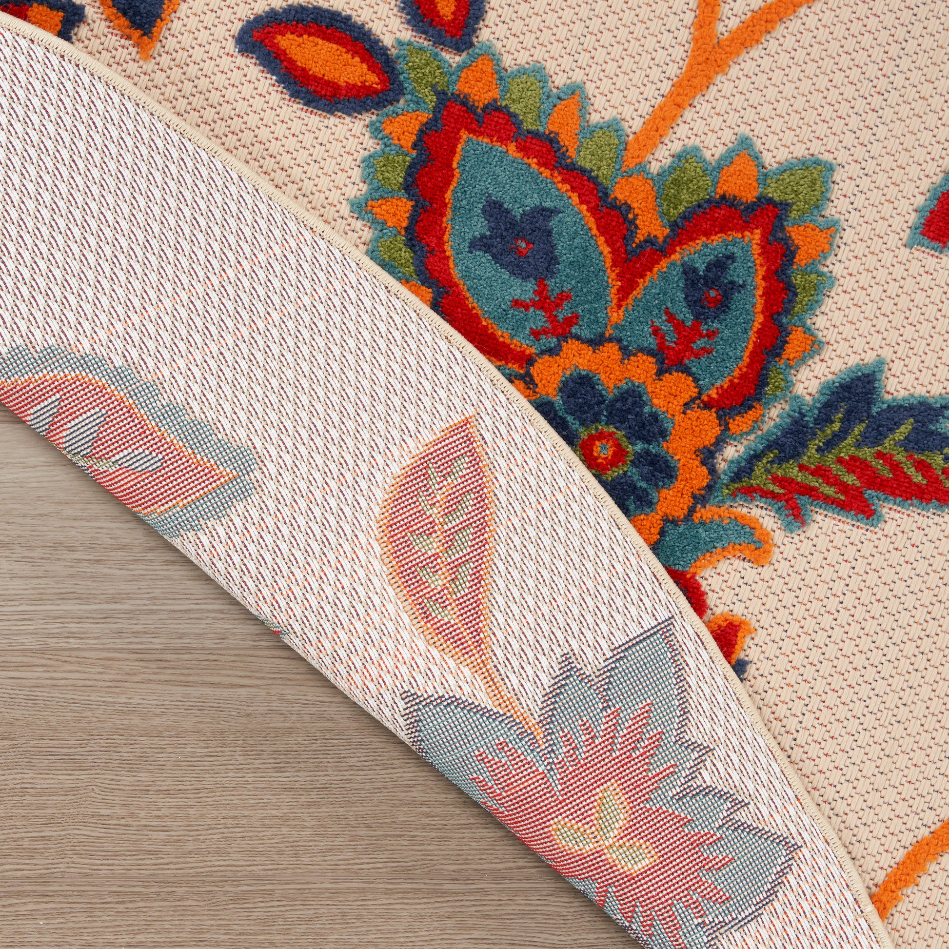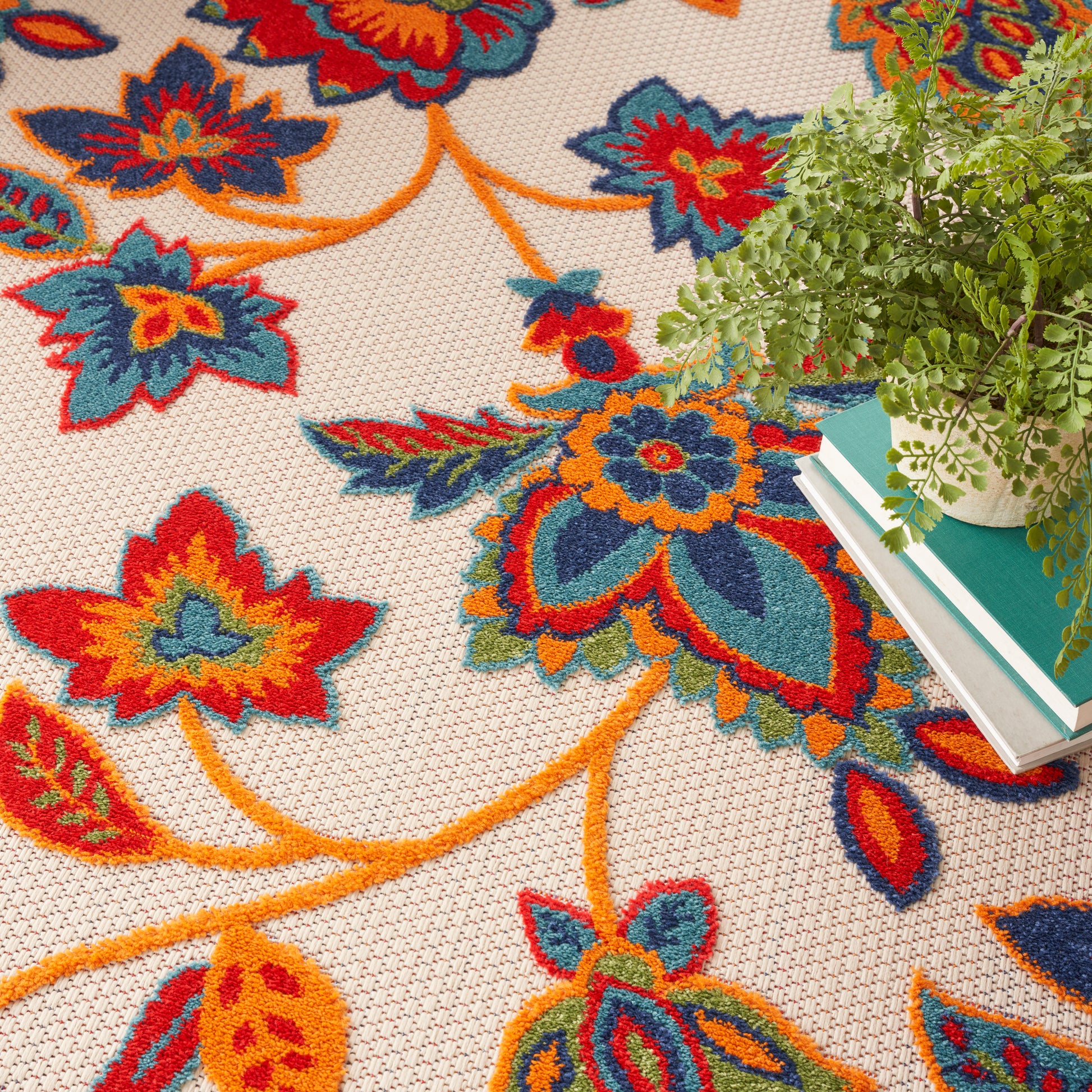 Invite a touch of country charm to your home with this multicolored floral outdoor rug from the Aloha Collection. Featuring a classic flower-and-vine pattern enhanced with a subtly raised cut pile, the contemporary design adds a subtle sense of depth to your porch, patio, or balcony. Made from durable polypropylene yarns, this rug can easily be used indoors in any high-traffic area including your kitchen, dining room, living room, and hallway. Hand washable outdoors: rinse with a hose and air dry.