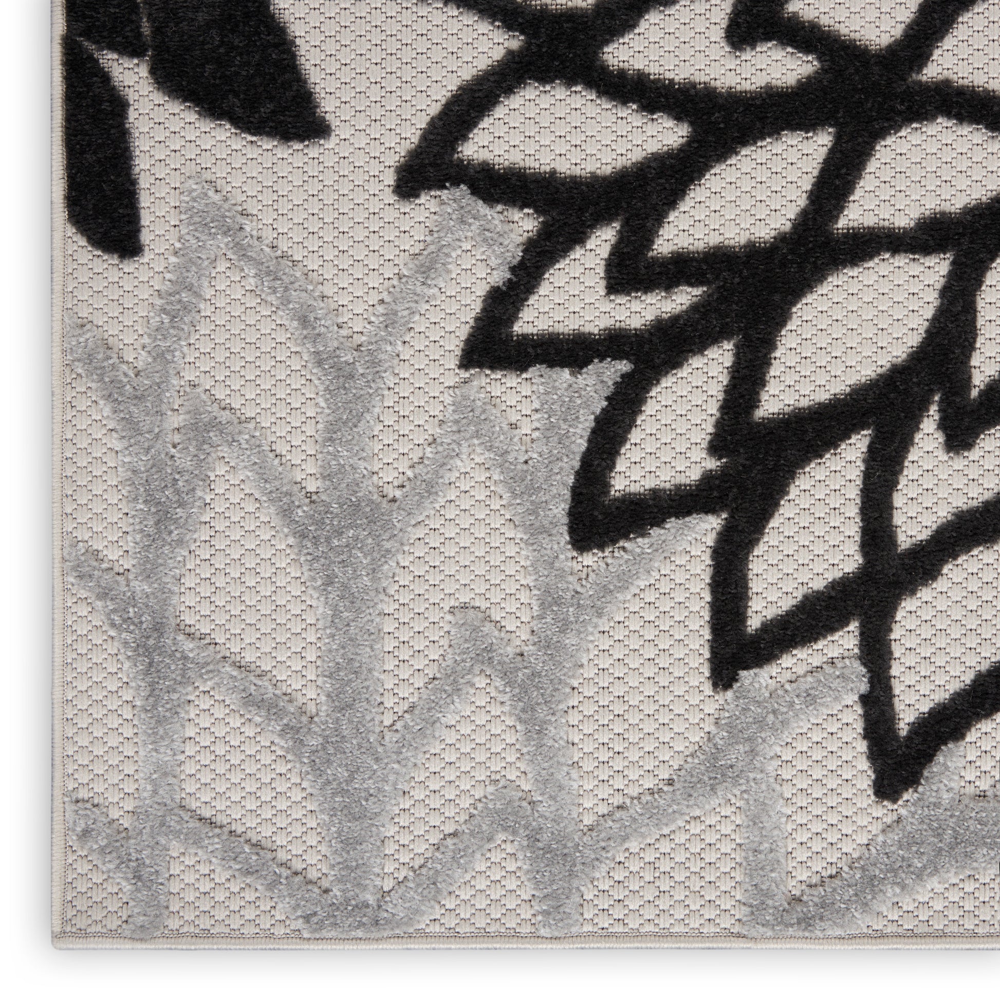 In shades of black, white and grey, this Aloha outdoor rug brings extra life and excitement to your patio, deck, or poolside. Its high-low construction combines delightful texture with an intricately woven base for an exceptional look and feel that stands up to the elements. This rug is machine-made from premium stain-resistant fibers that are easily washable with a hose: simply rinse and allow both sides time to fully air dry. To extend the life of your rug, bring indoors during extreme weather.