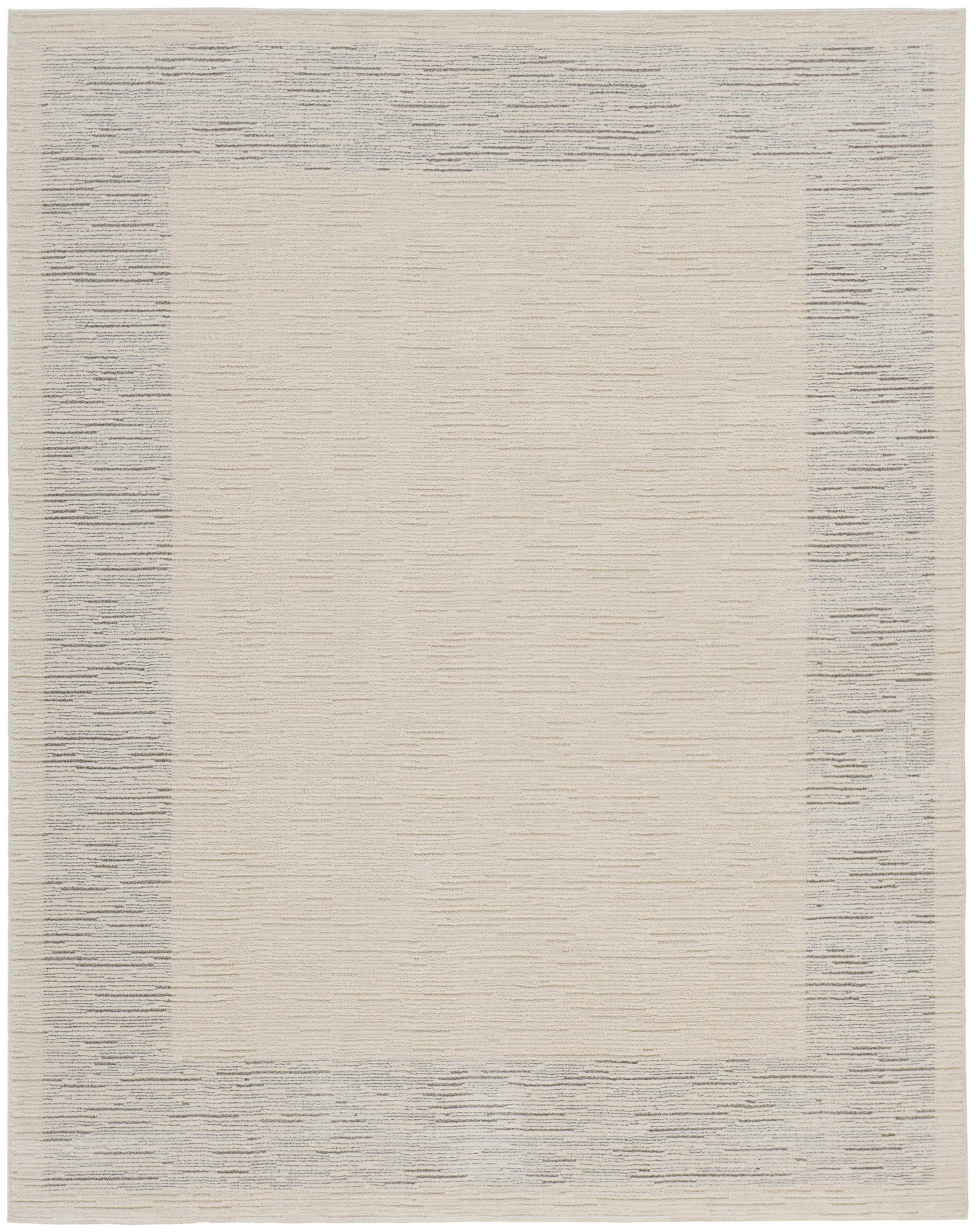 Invite calm into your living room or bedroom with this ivory and grey bordered rug from the Andes Collection. The classic design is made modern with a narrow-striped effect that adds a breezy look, which is enhanced with a high-low cut pile that adds dimension. Made from a blend of polyester and polypropylene fibers for easy cleaning and plush texture.