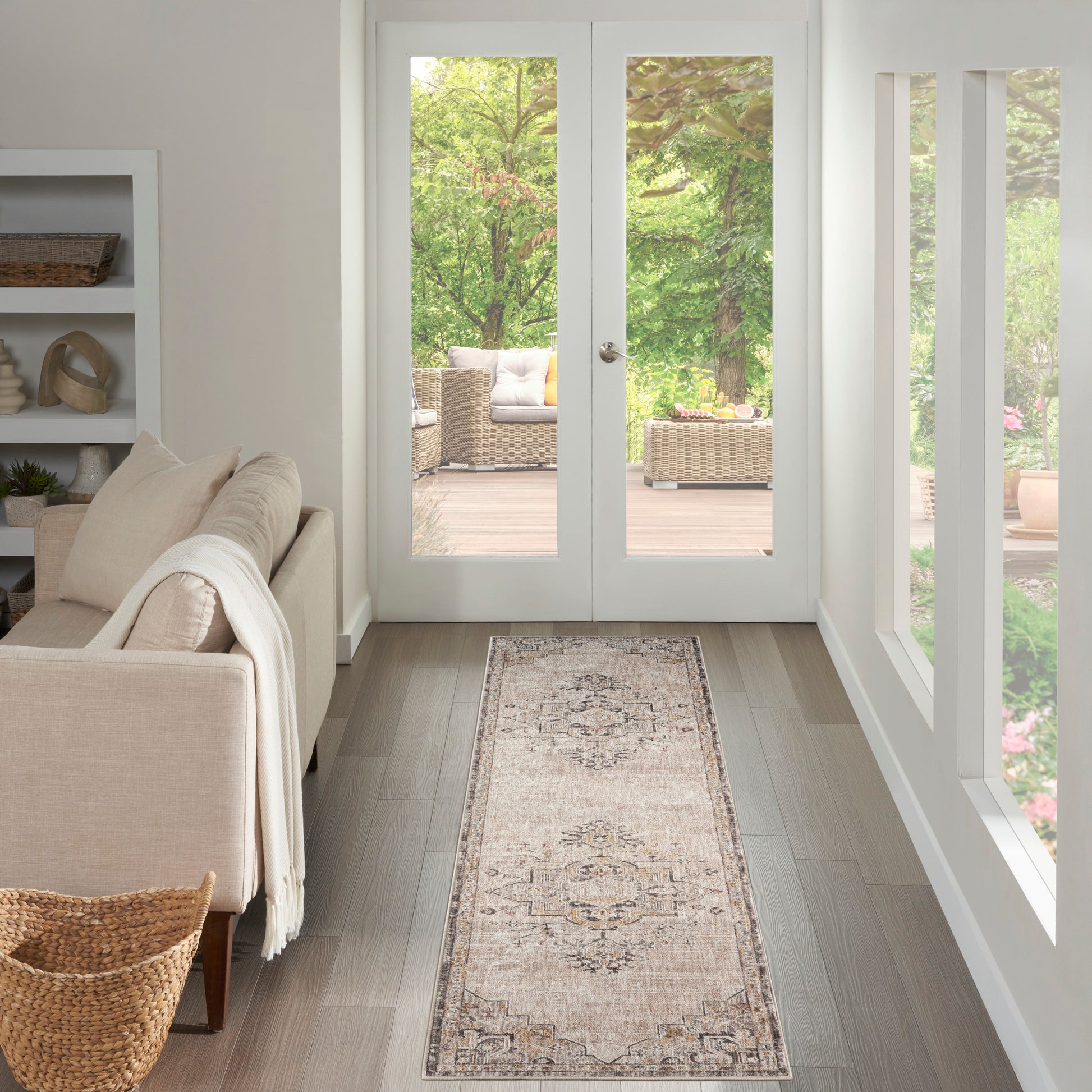 Nourison Antique Fusion 2'2" x 10' Ivory Charcoal Vintage Indoor Rug