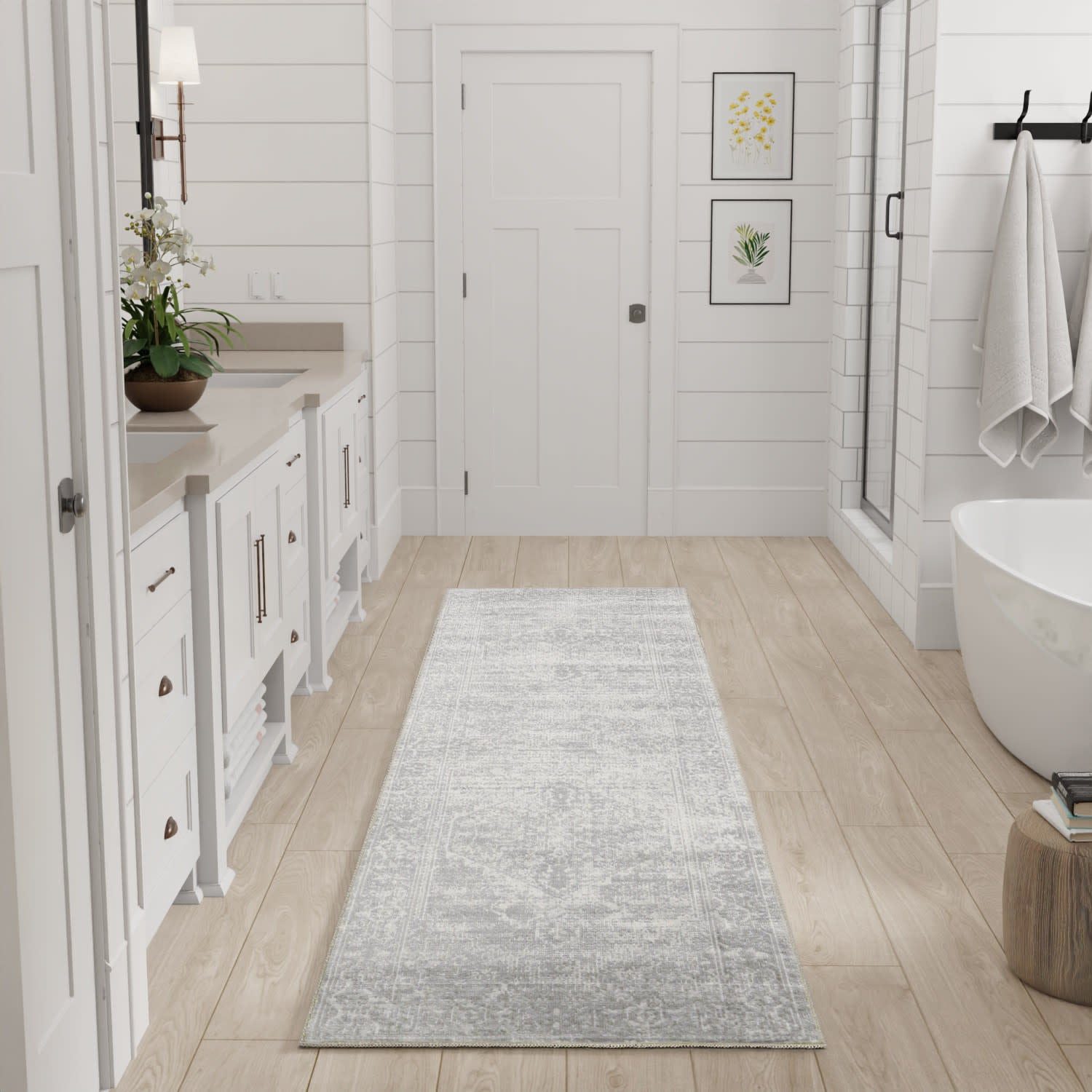 Nourison Astra Machine Washable 2' x 6' Light Grey Vintage Indoor Rug