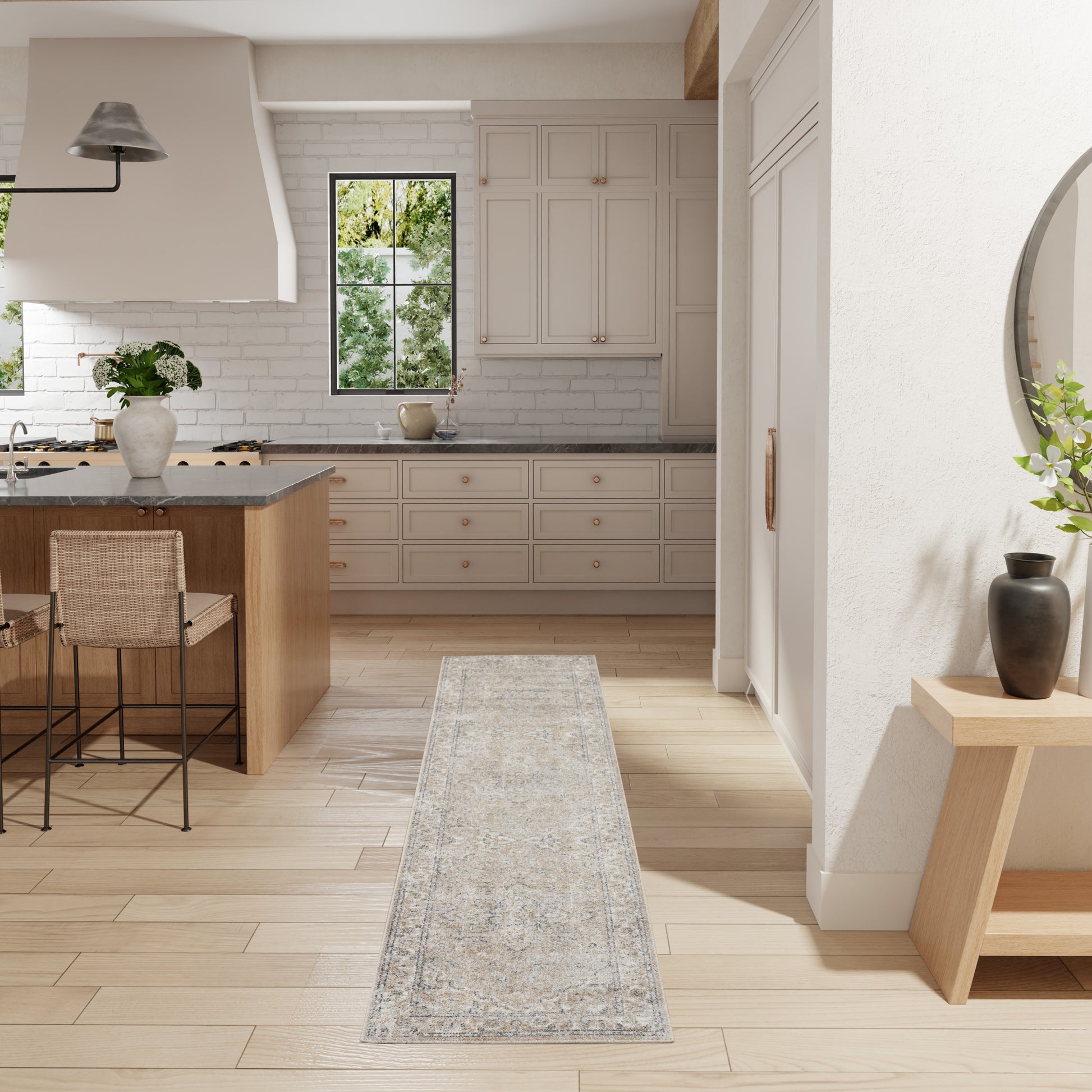Nourison Astra Machine Washable 2'2" x 12' Beige Vintage Indoor Rug