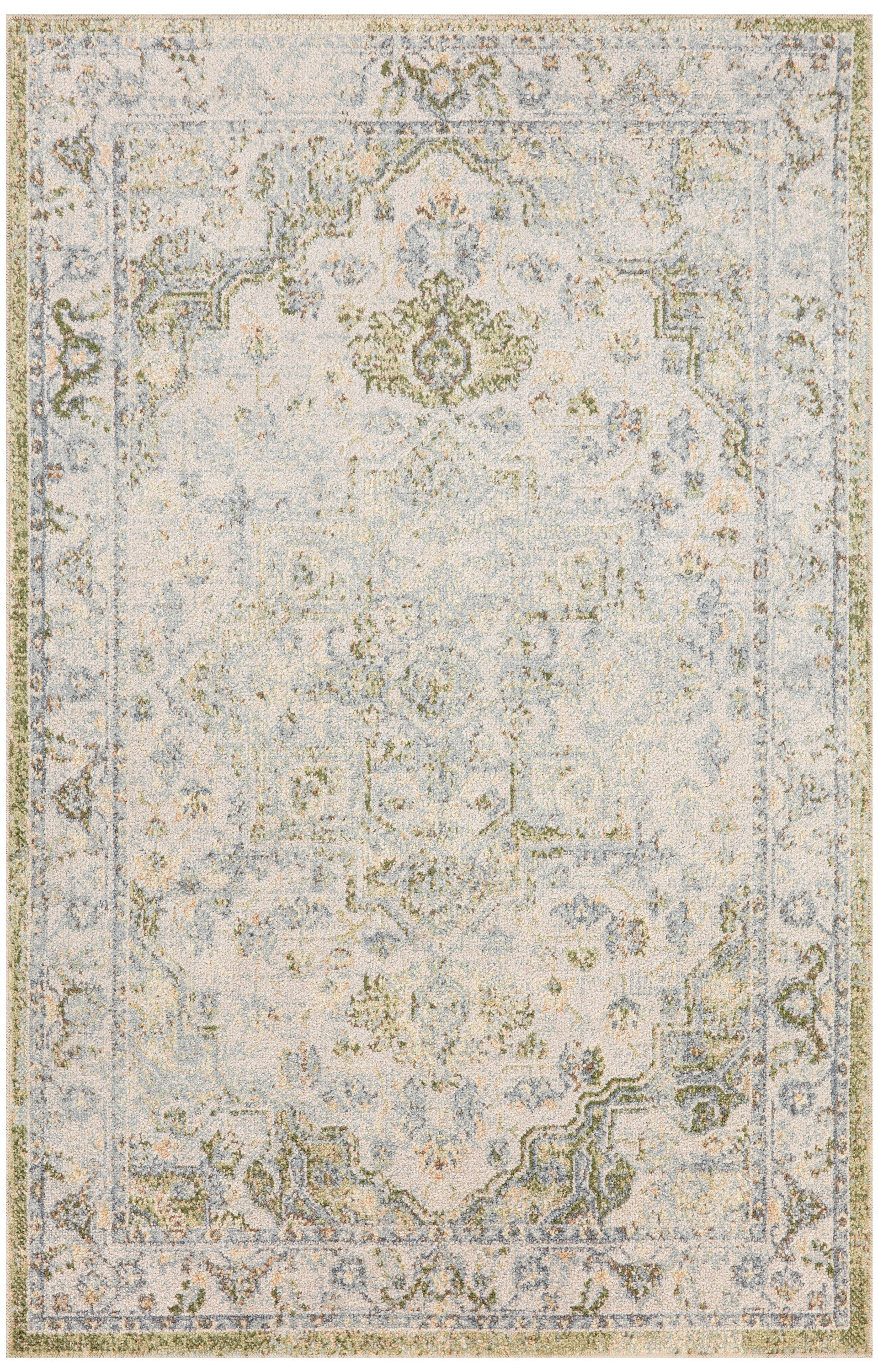 Invite a touch of old-world charm into your favorite space with this Persian rug from the Astra Machine Washable Collection. The heirloom-inspired design features an artfully faded green and blue floral medallion pattern and matching border that beautifully defines farmhouse, boho, and vintage décor. This rug is designed for modern living with a low-profile, machine-washable pile and shimmering yarns that beautifully reflect shifting light.