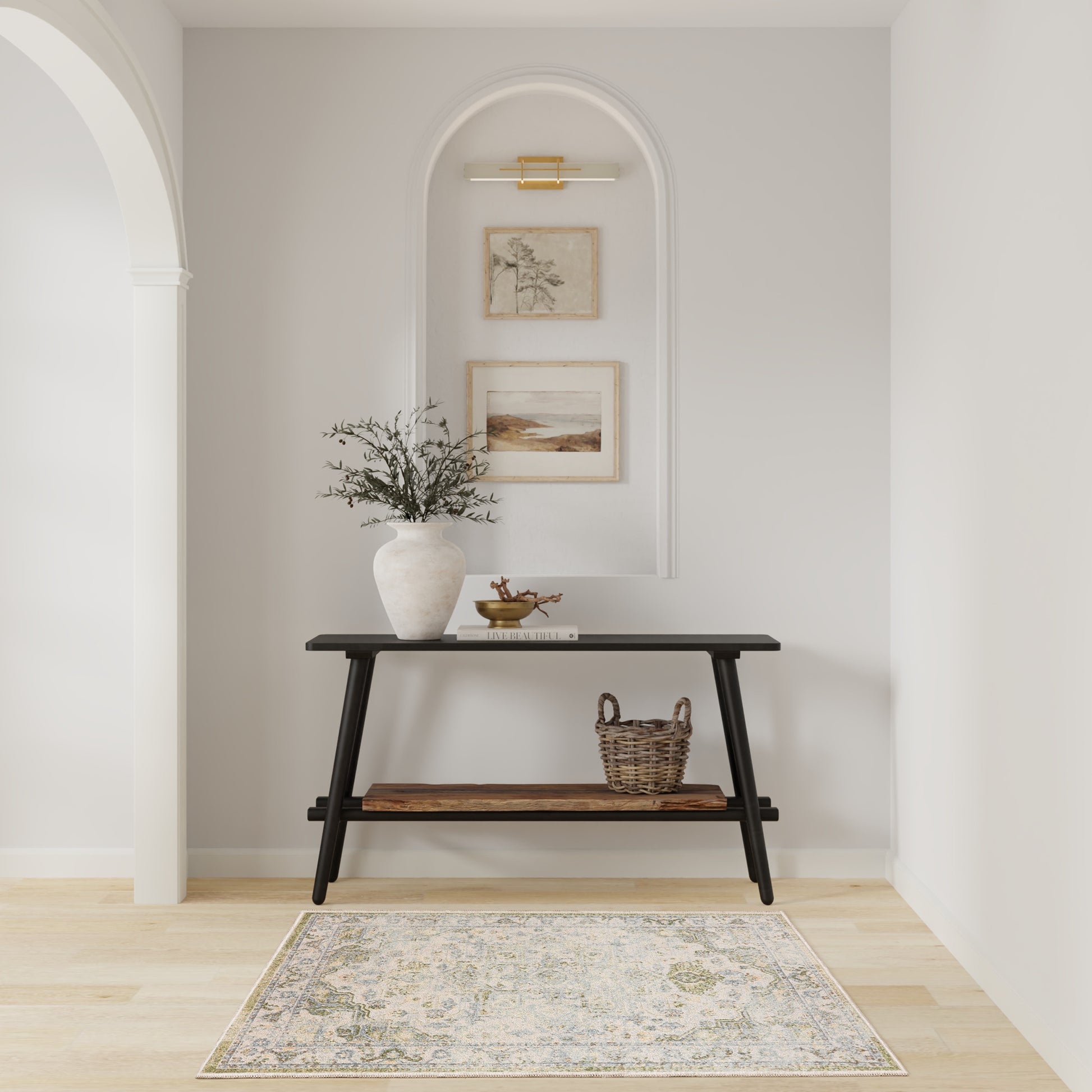 Rug Pad Benefits: Adding a layer of padding helps cushion the rug and lesson pressure, helping to prolong the rug’s life. In addition, the extra padding helps deaden sound in the room.