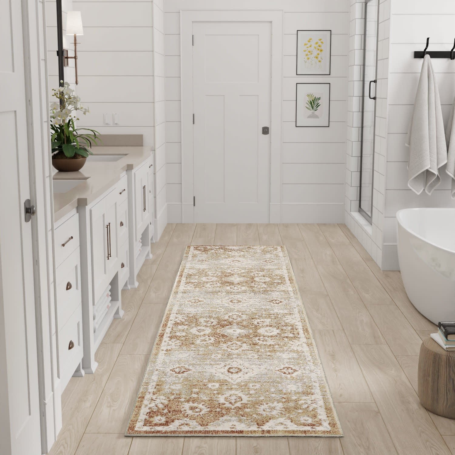 Embrace an artful blend of traditional and modern style with this distressed Persian-style rug from the Astra Machine Washable Collection. Showcasing a subtly weathered pattern in warm copper and cream hues, this rug brings a sense of refined elegance to any room. With a low-profile construction that’s easy to clean, it’s ideal for busy households that value beauty and practicality.