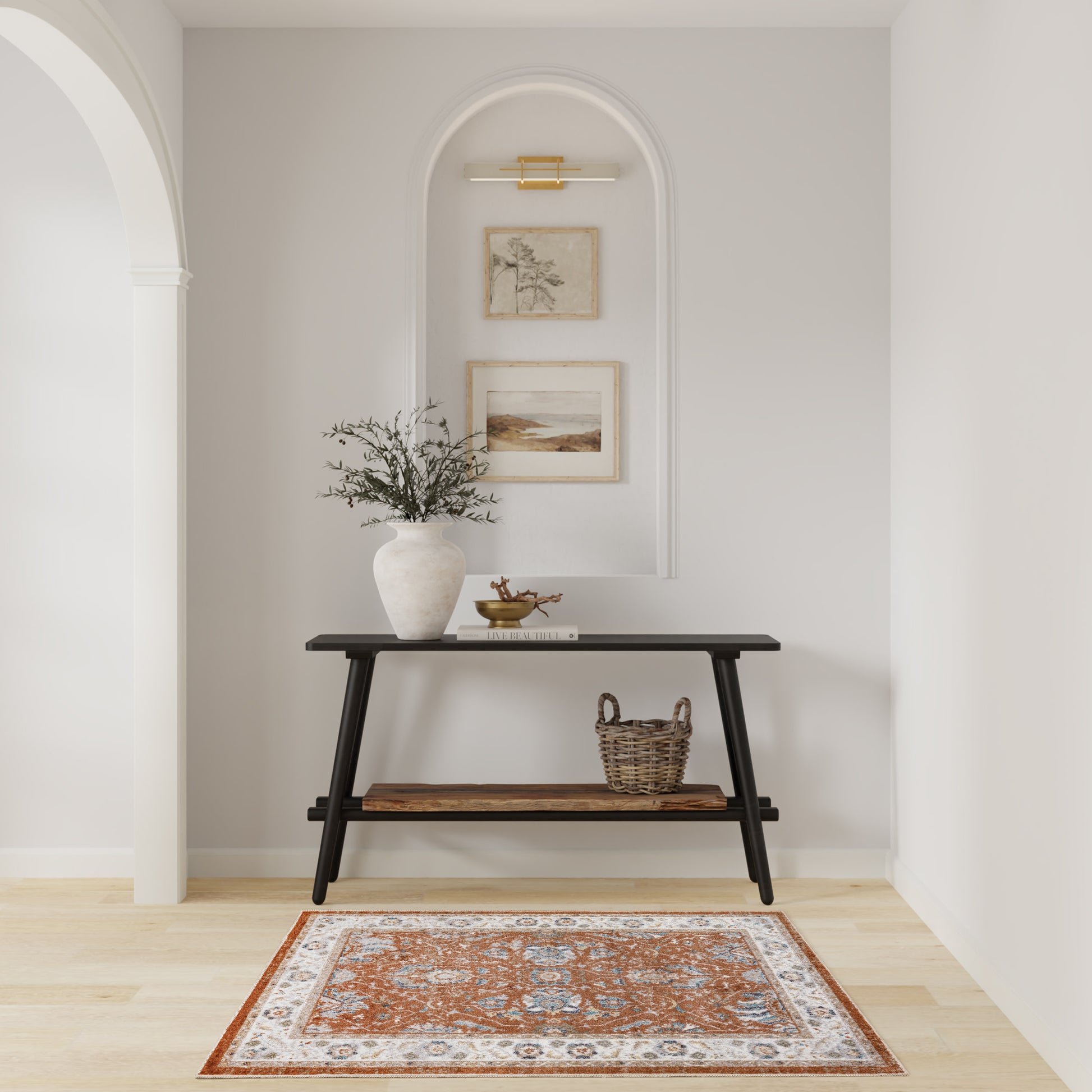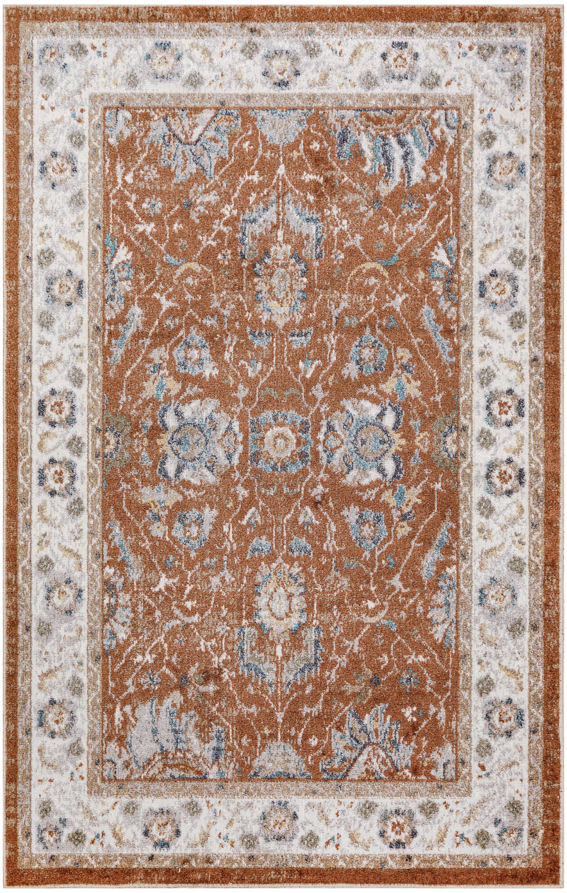 Invite an instant sense of personality to your decor with this rust and ivory Persian-inspired rug from the Astra Machine Washable Collection. The detailed floral pattern is finished with an artful fade that brings a storied look to your décor, while the silky pile adds a brilliant shimmer. This vintage style rug is machine-washable for fuss-free cleaning, making it an ideal addition to busy households with pets and kids.