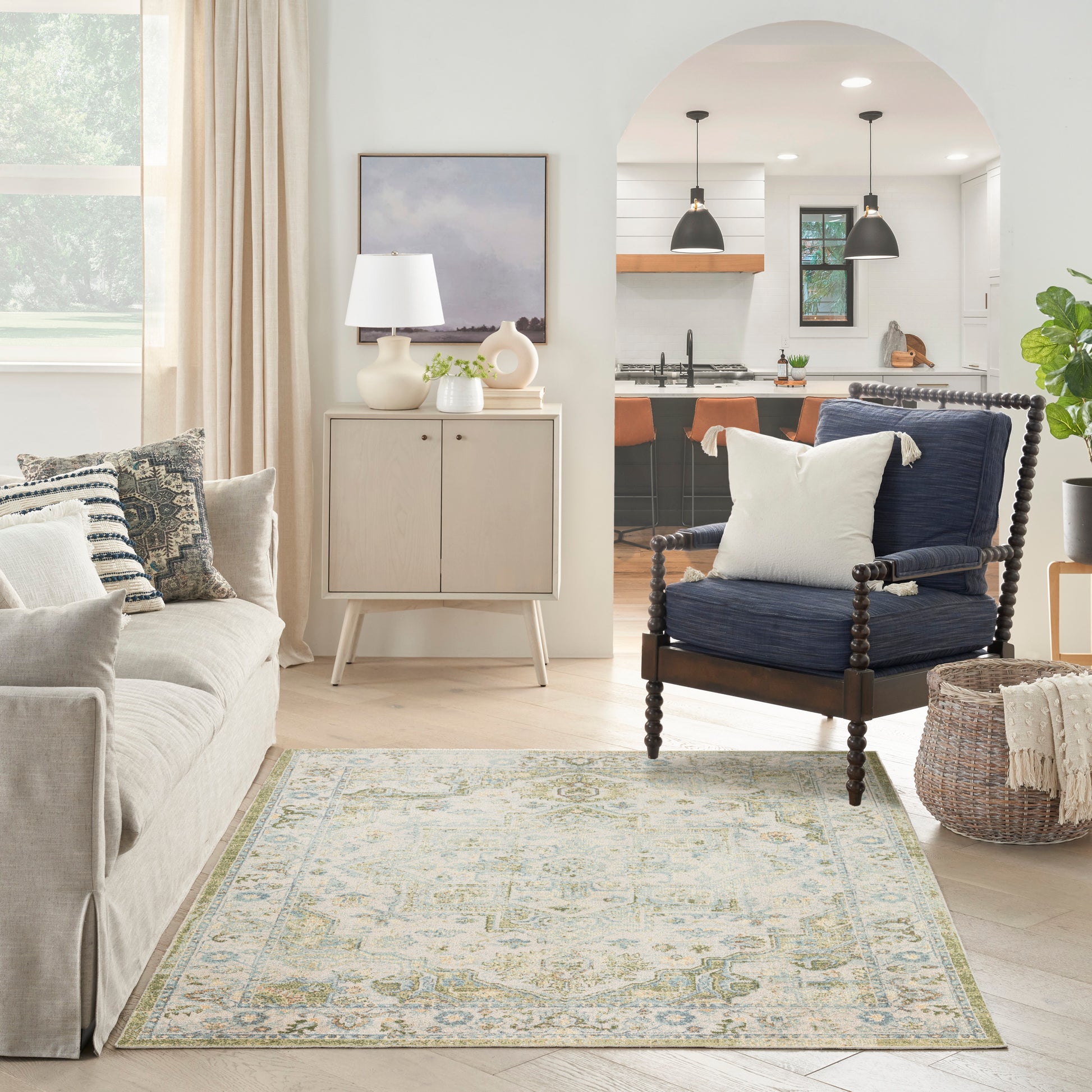Nourison Astra Machine Washable 4' x 6' Blue Green Vintage Indoor Rug