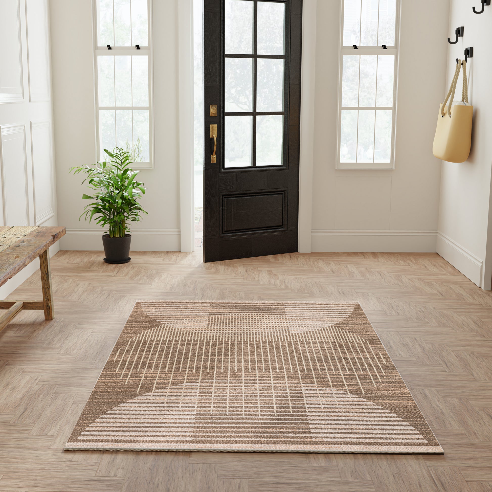 Nourison Astra Machine Washable 4' x 6' Latte Mid-Century Modern Indoor Rug