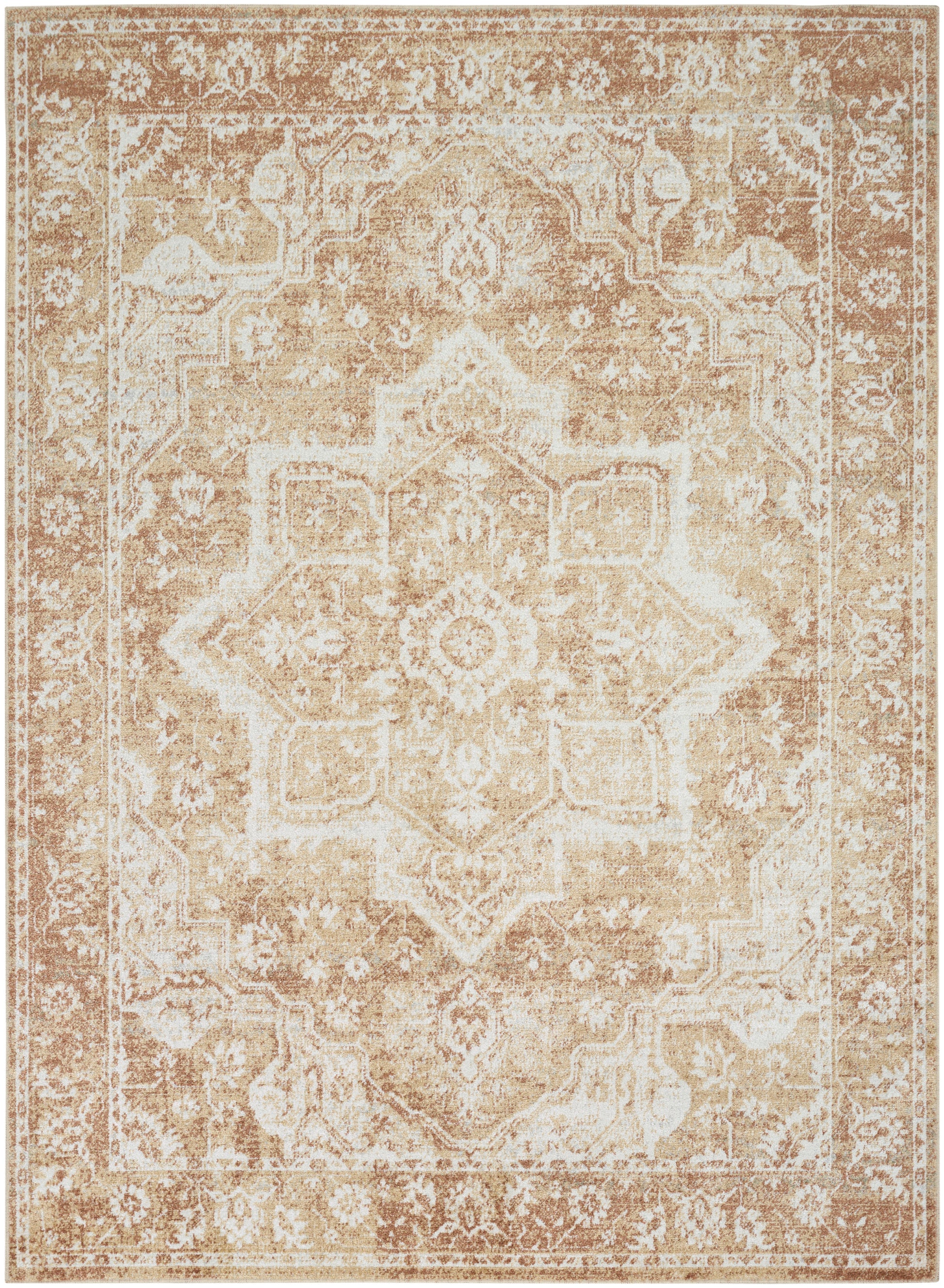Invite a touch of old-world charm into your favorite space with this rust Persian rug from the Astra Machine Washable Collection. The heirloom-inspired design features an artfully faded floral medallion pattern and matching border that beautifully defines farmhouse, boho, and vintage decor. This rug is designed for modern living with a low-profile, machine-washable pile and shimmering yarns that beautifully reflect shifting light.