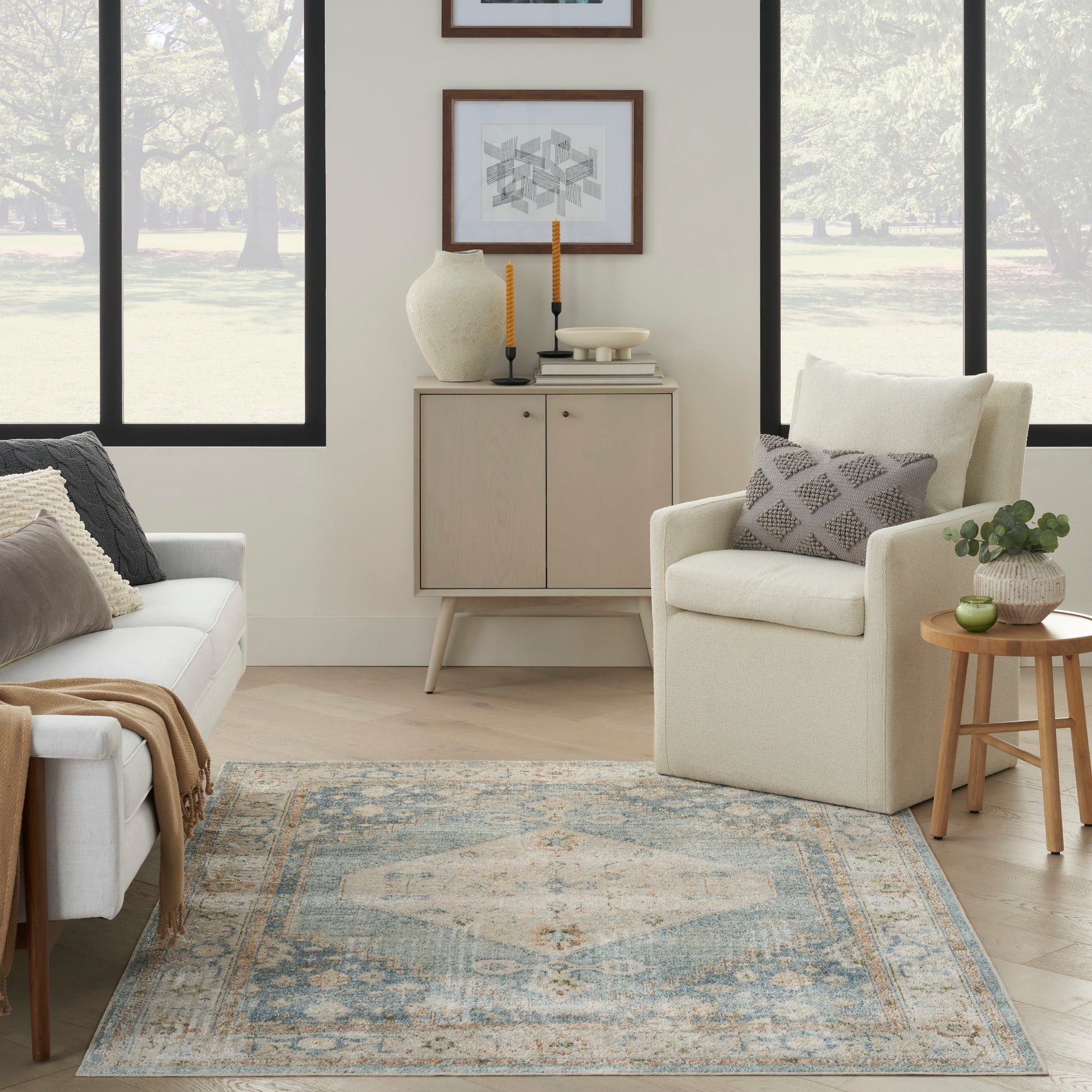 Nourison Astra Machine Washable 4' x 6' Silver Blue Vintage Indoor Rug