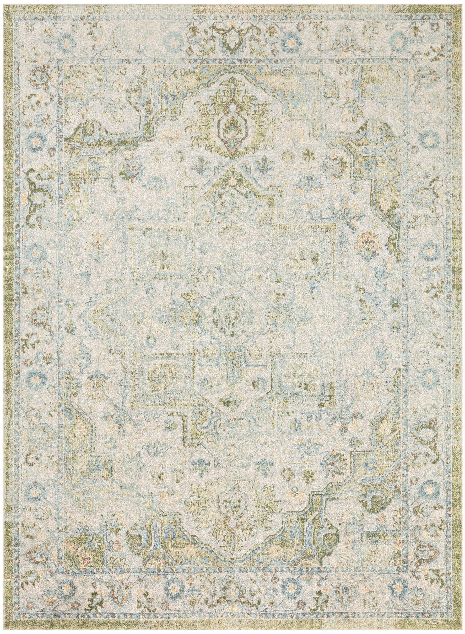 Invite a touch of old-world charm into your favorite space with this Persian rug from the Astra Machine Washable Collection. The heirloom-inspired design features an artfully faded green and blue floral medallion pattern and matching border that beautifully defines farmhouse, boho, and vintage décor. This rug is designed for modern living with a low-profile, machine-washable pile and shimmering yarns that beautifully reflect shifting light.