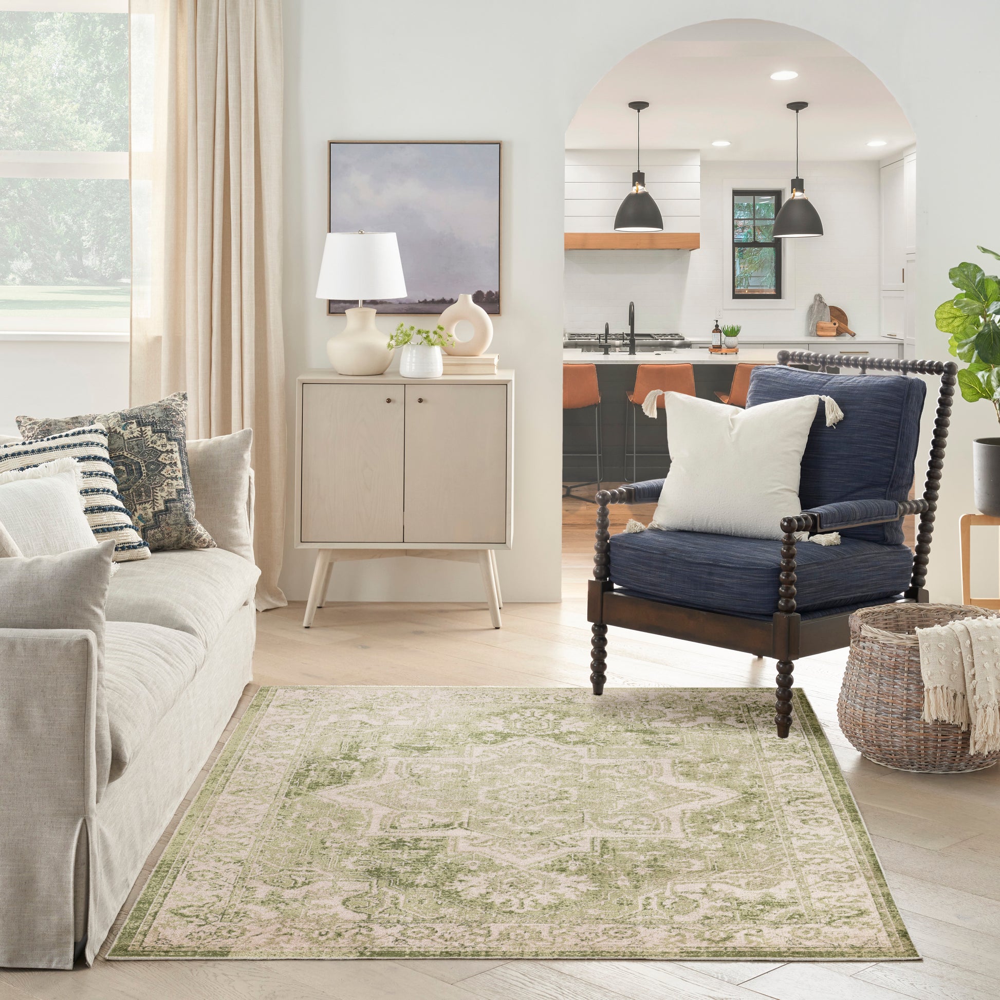 Nourison Astra Machine Washable 5'3" x 7' Ivory Green Vintage Indoor Rug