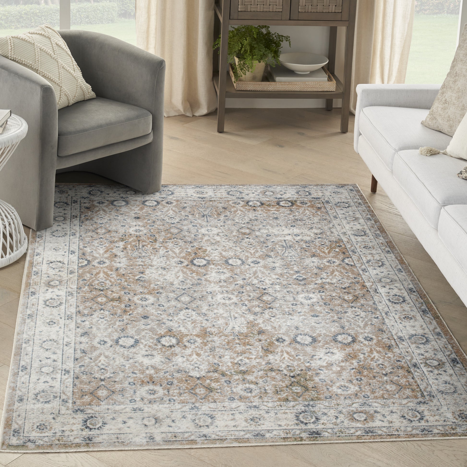 Nourison Astra Machine Washable 5'3" x 7' Silver Taupe Vintage Indoor Rug