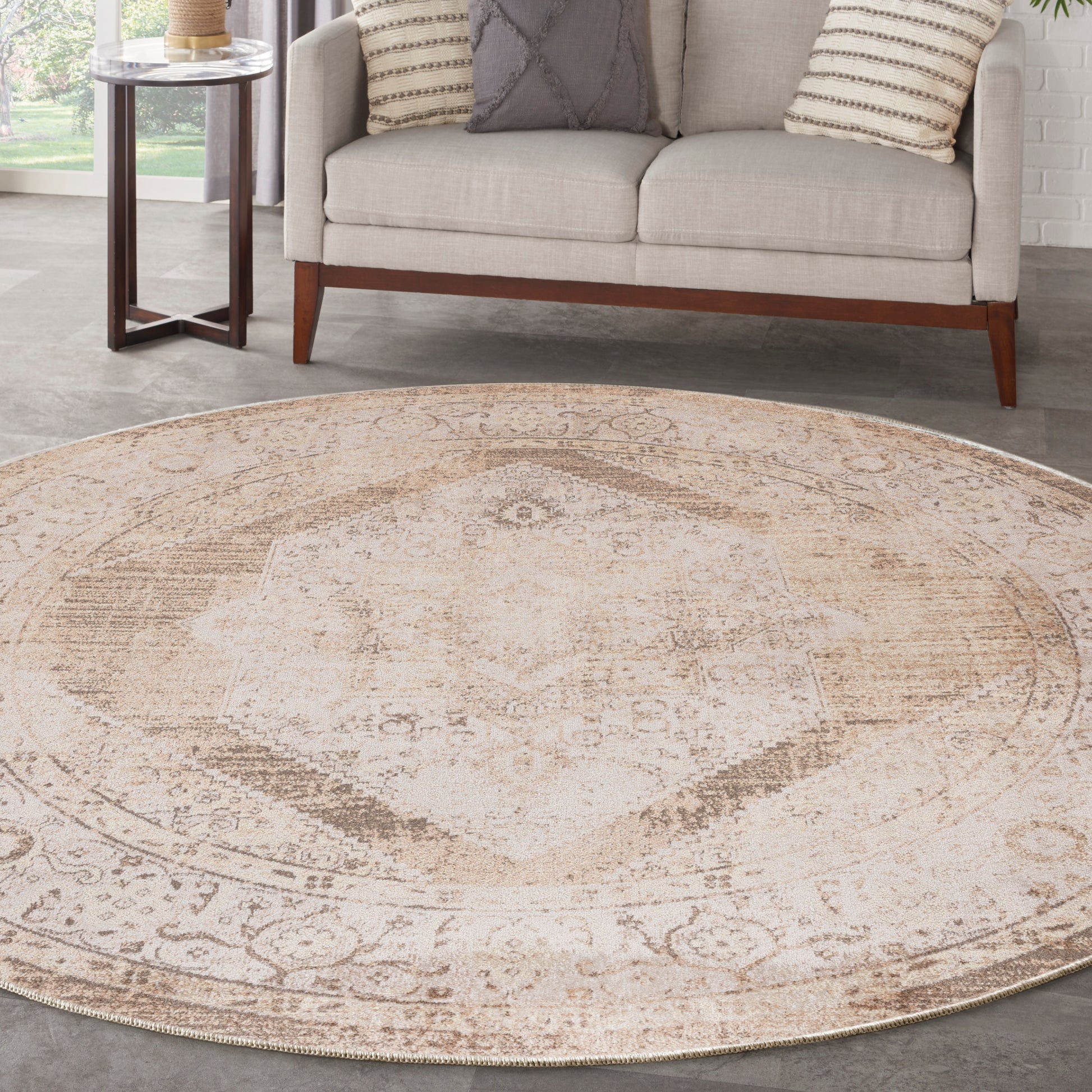 Nourison Astra Machine Washable 5'3" x Round Beige Vintage Indoor Rug