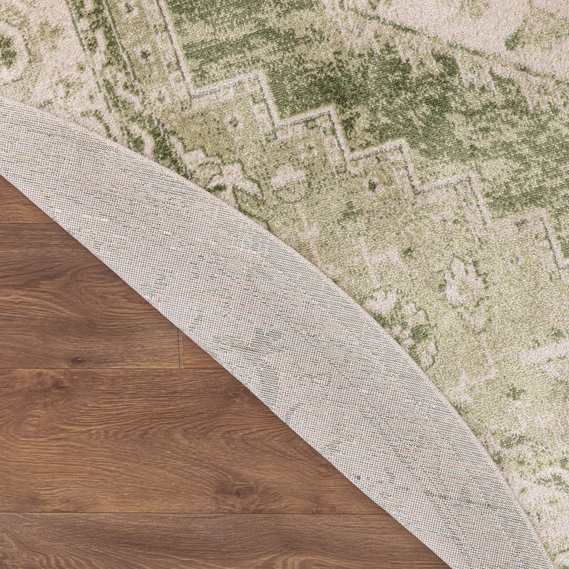 Vintage meets modern with this Persian rug from the Astra Machine Washable Collection. Featuring an artfully faded floral medallion pattern in ivory and green, the classic design is enhanced with a brilliant sheen that shifts in tone under different lighting. This vintage-inspired rug is machine-washable for fuss-free cleaning, making it an ideal addition to busy households with pets and kids.