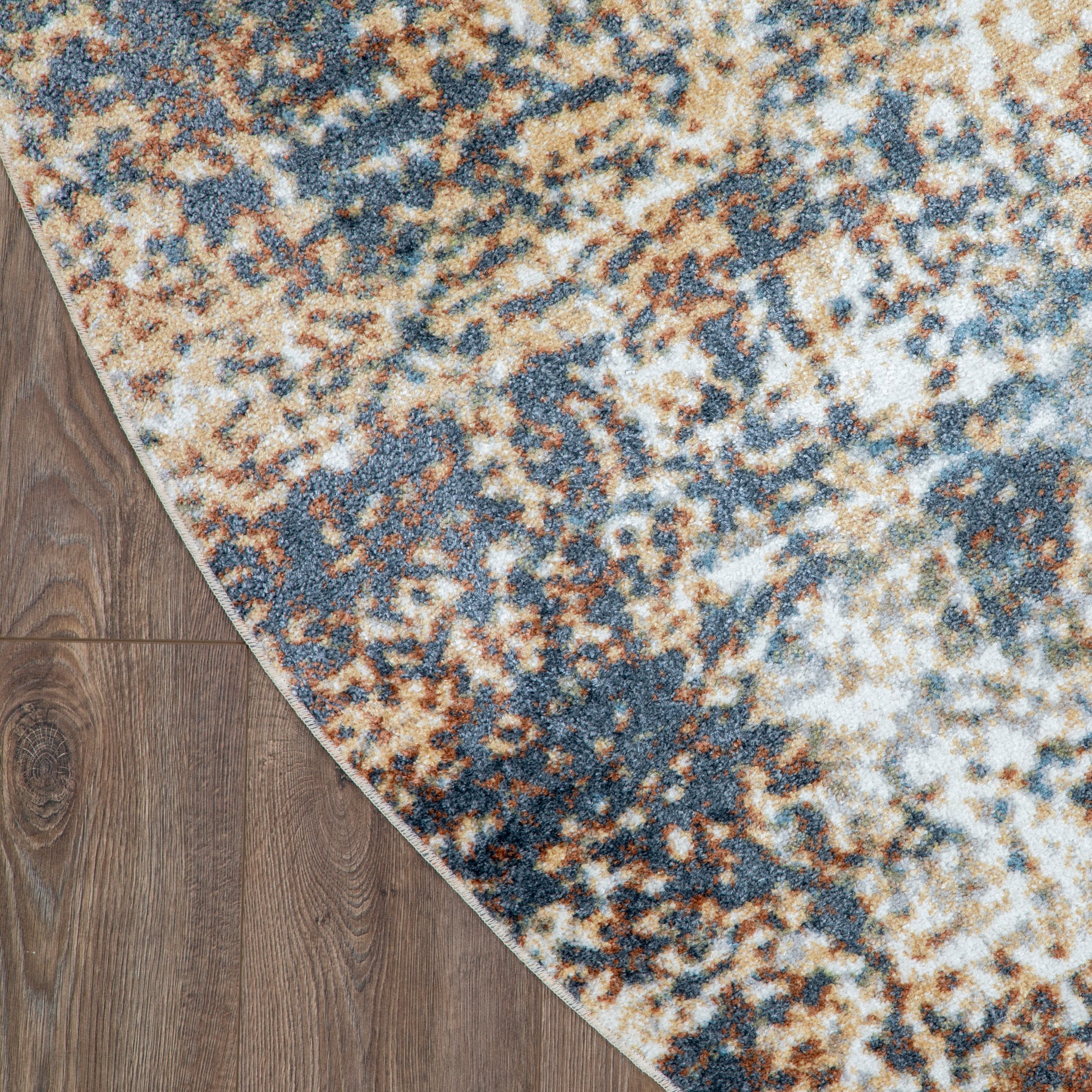 Modern with a touch of rustic style, this abstract rug from the Astra Machine Washable Collection easily complements a variety of spaces. Muted shades of blue and rust sprawl across the ivory ground, enhanced with a shimmering finish that shifts tones under different lighting. Made for modern living with a softly textured, low-pile construction that’s easy to clean: simply toss into your washing machine and air dry.