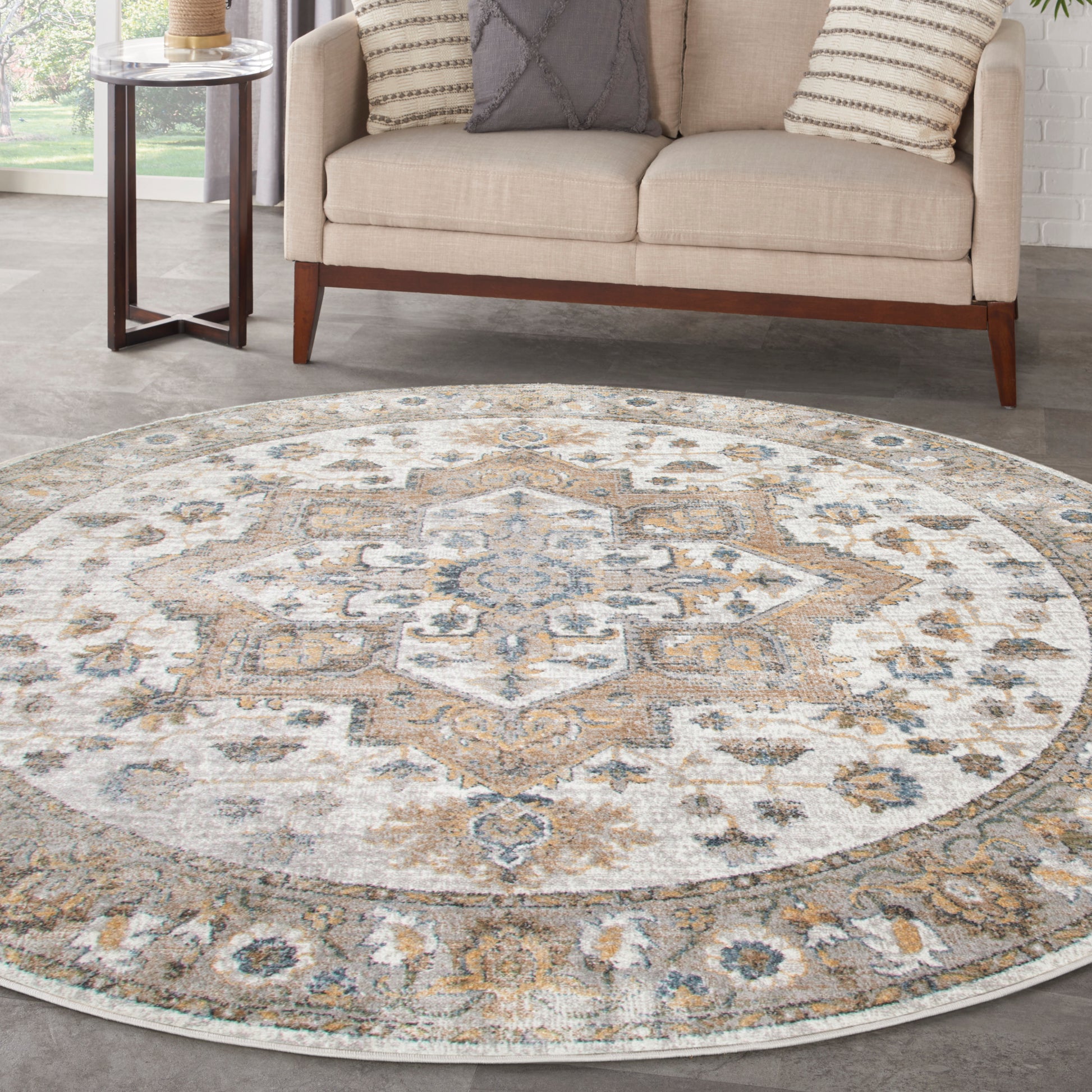 Nourison Astra Machine Washable 5'3" x Round Silver Grey Vintage Indoor Rug